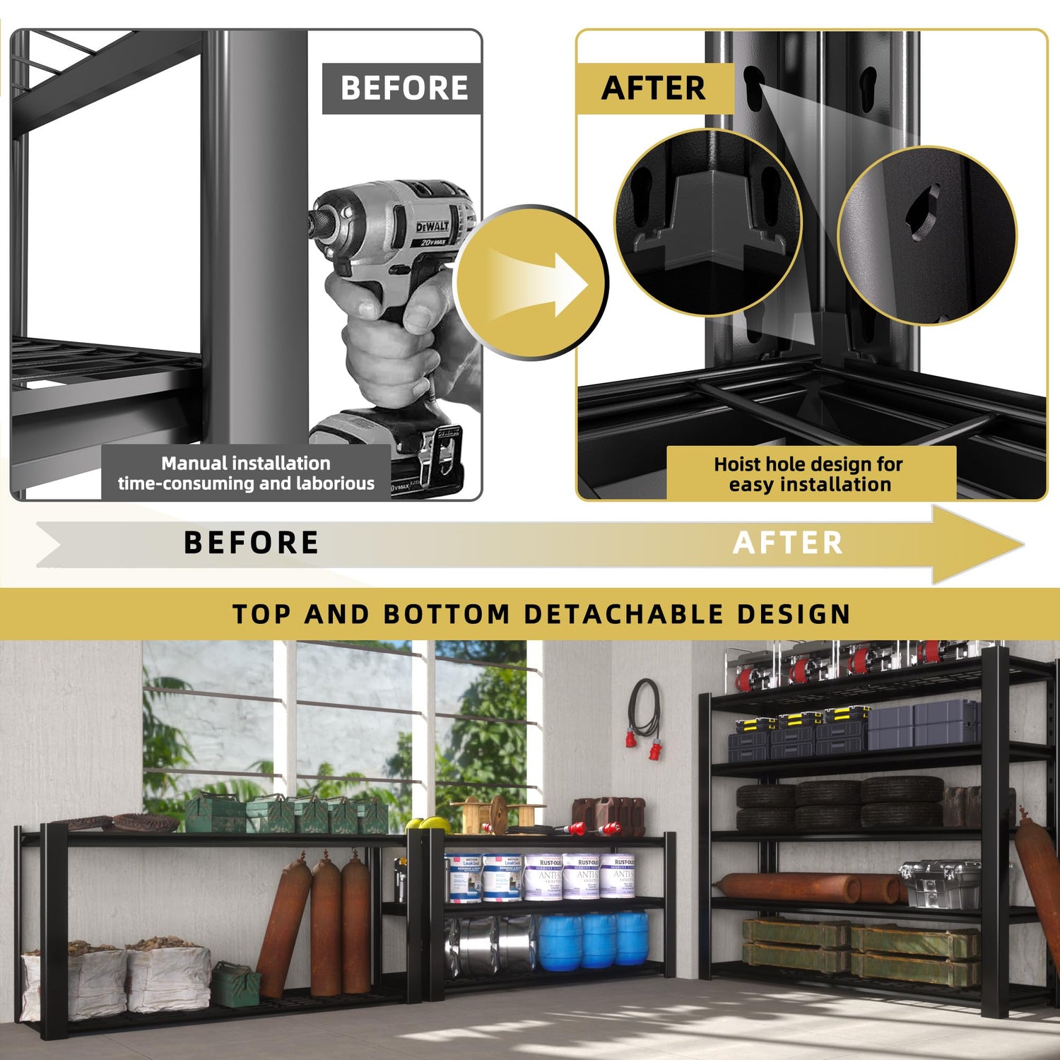 - Durable Metal Construction: Made of high-quality metal with a powder-coated finish, this garage shelving unit is rust-resistant and built to last, ensuring long-term durability and reliability in various environments.