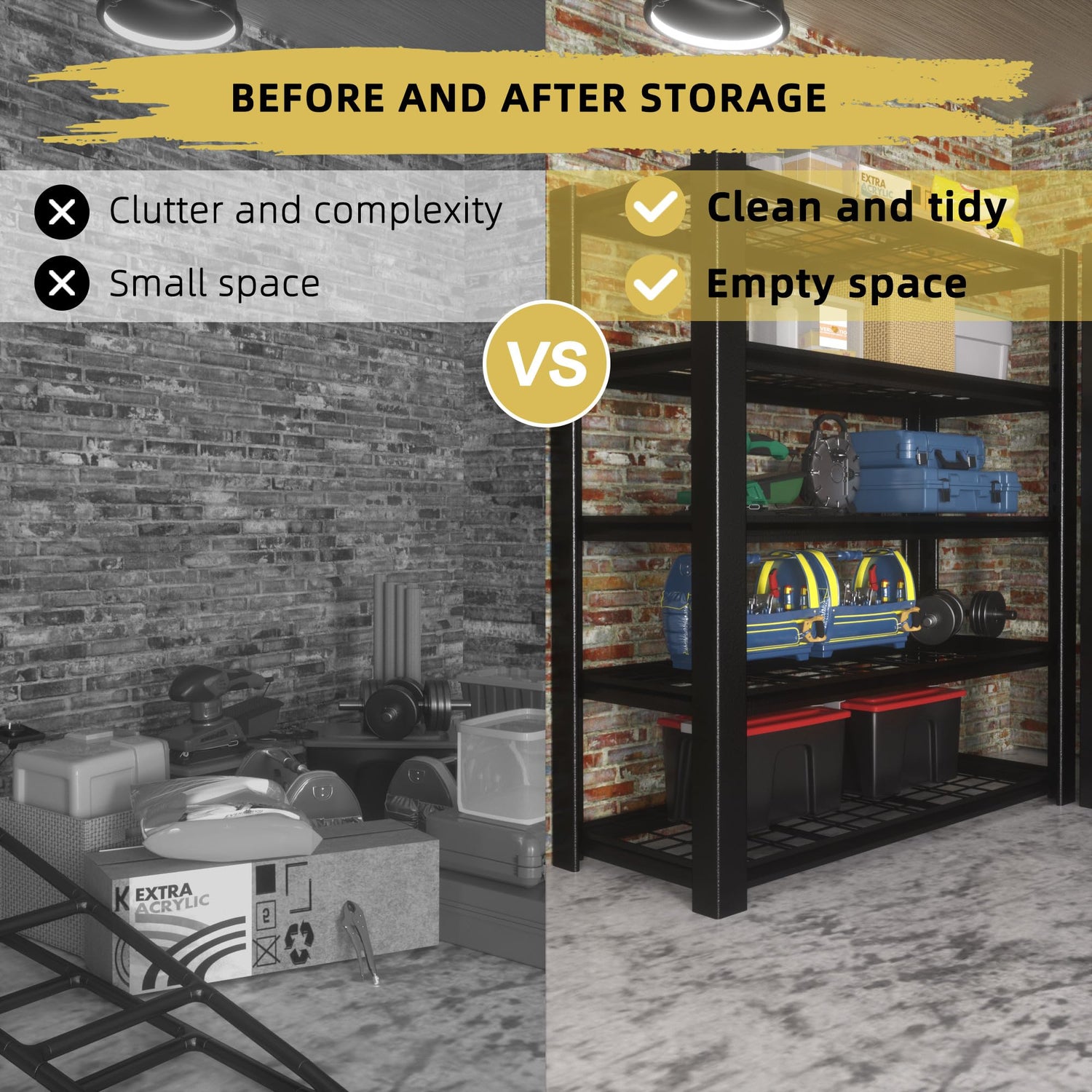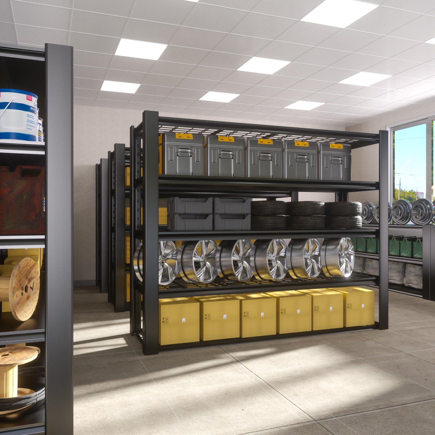 - Durable Metal Construction: Made of high-quality metal with a powder-coated finish, this garage shelving unit is rust-resistant and built to last, ensuring long-term durability and reliability in various environments.