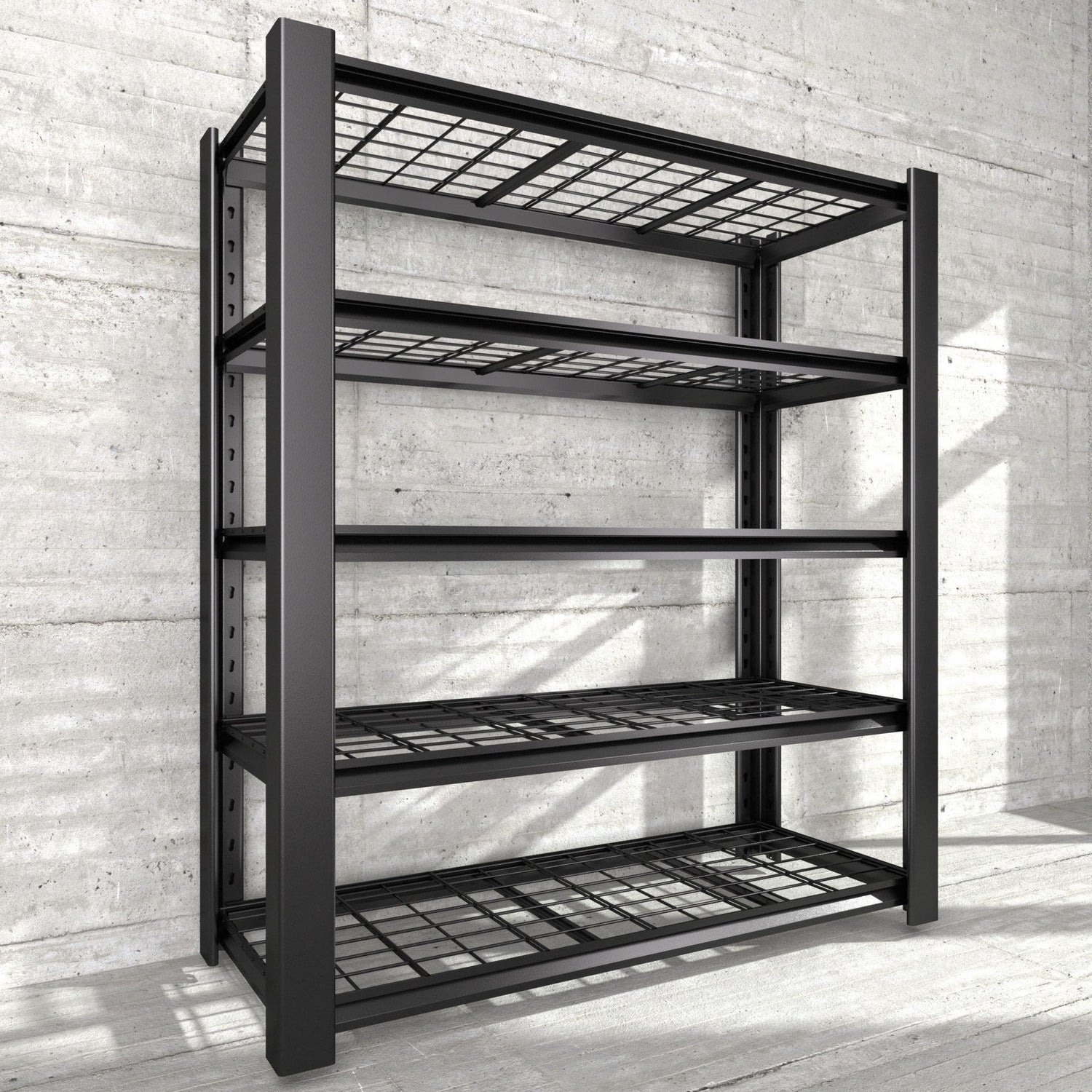 Heavy Duty Garage Shelving Unit with Wire Grid Shelves, Industrial Garage Storage Shelf,76.6" H x 60" W x 24" D, 5-Tier Adjustable Metal Shelving for Heavy Duty Shelving, Storage Room, Basement-1Pack