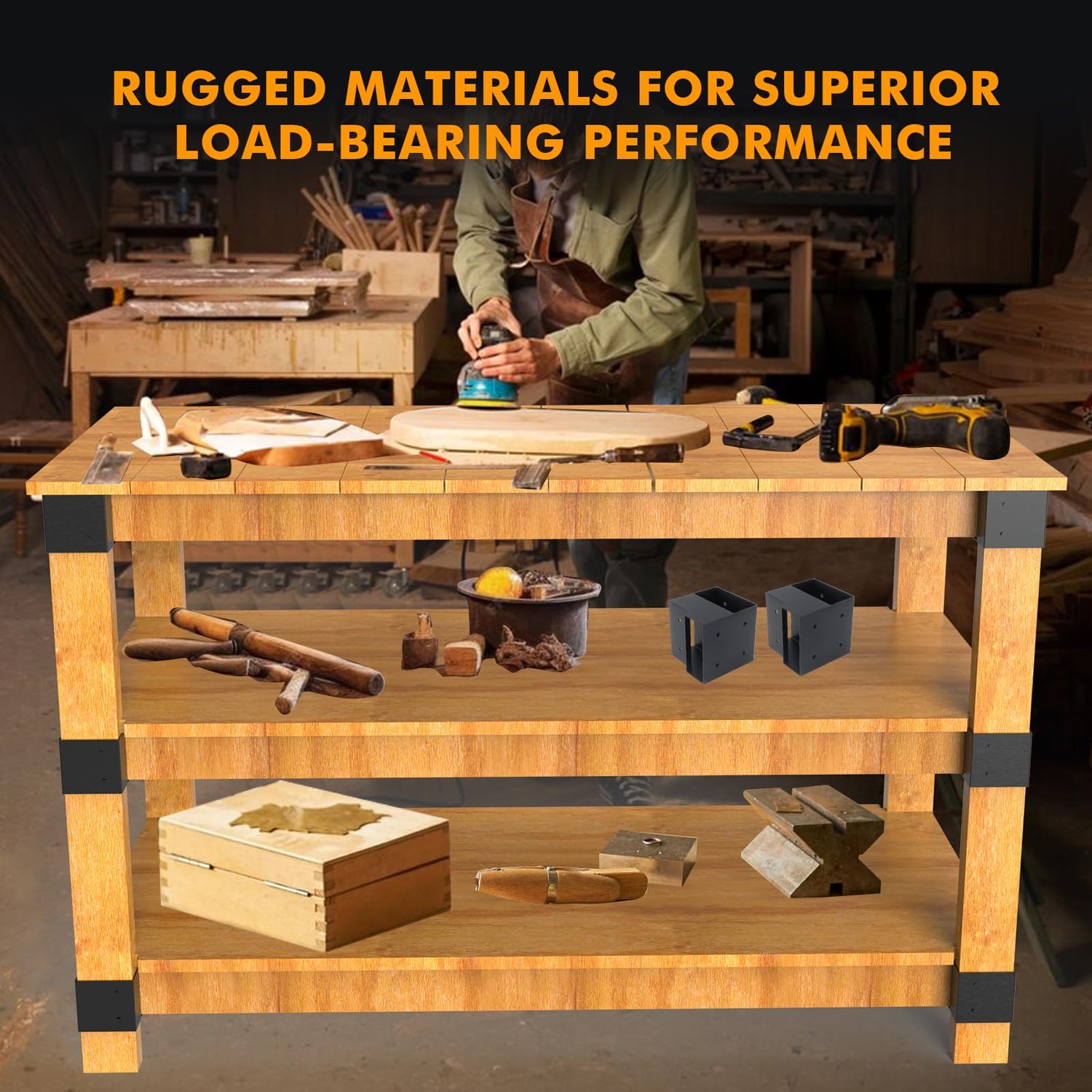 - Sturdy and Durable: Made of steel with a black textured surface, these metal corner brackets are anti-rust and designed for heavy-duty use. They are stable enough to support your workbench and enhance its durability.