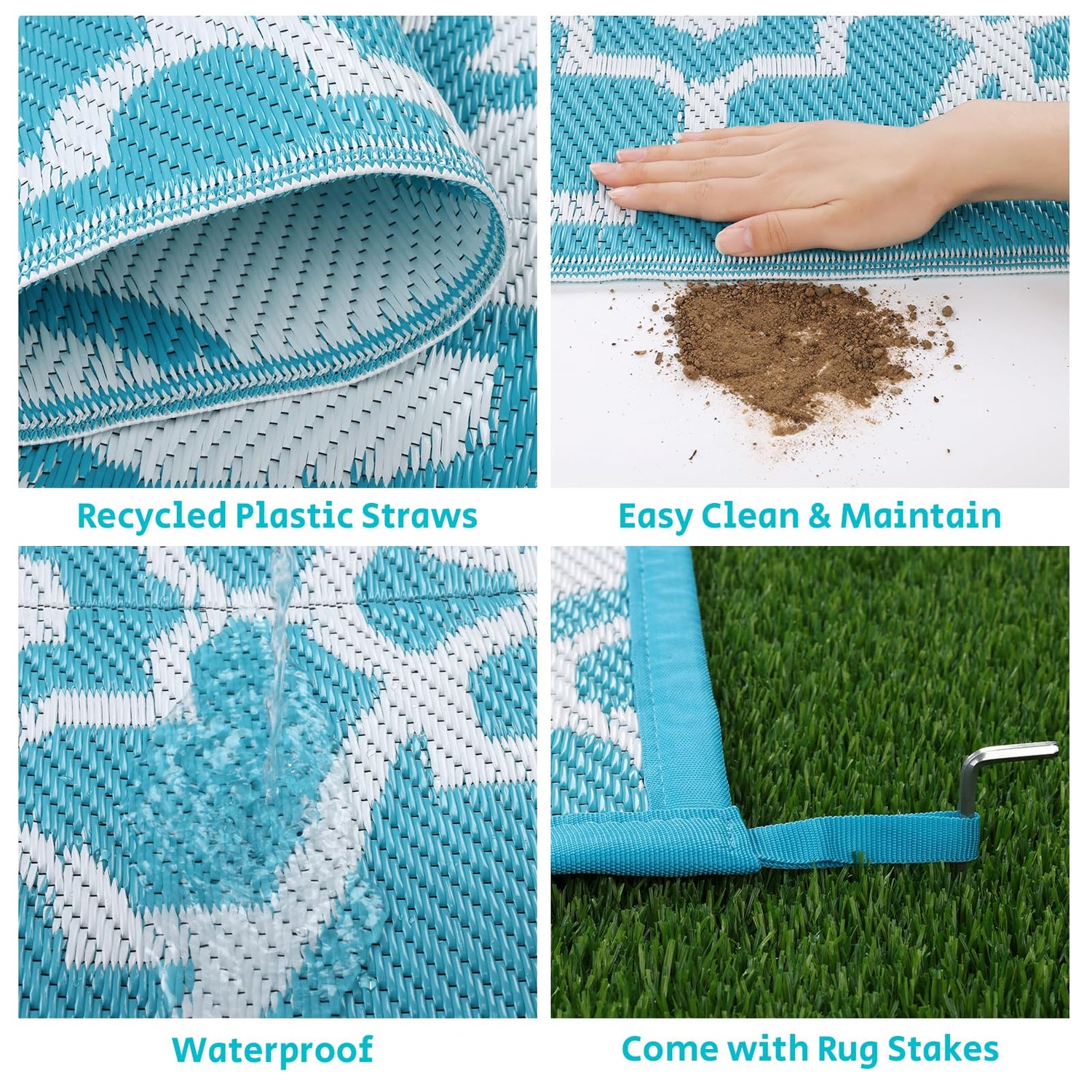 - Easy Maintenance Waterproof Patio Rugs : Compared with other camper rugs, this camping outdoor rug is simply wipe or hose off; For a deep clean, you can use a wet soft cloth with mild soap and rinse with water.
