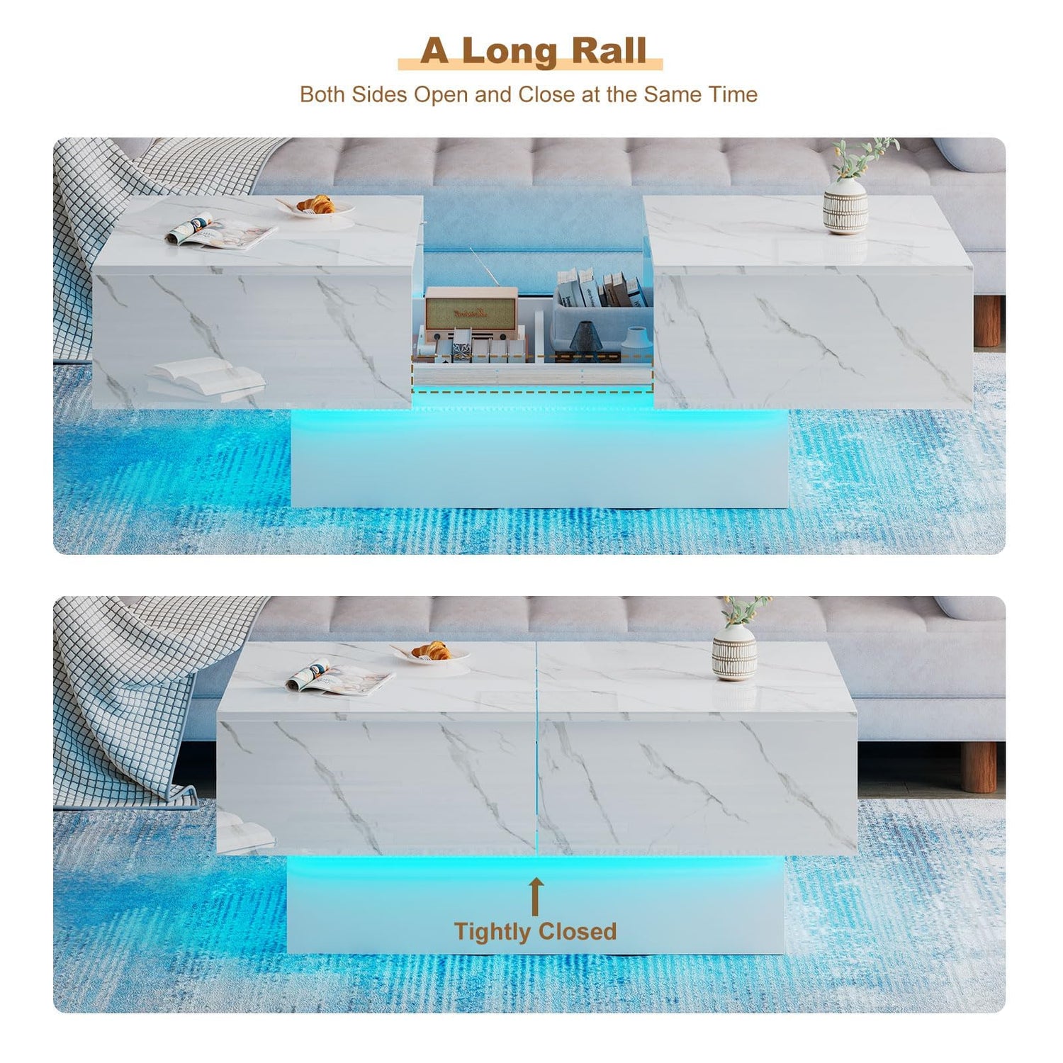 - 【Coffee table with Storage】Experience the convenience of hidden storage with our sleek white Marble Finish coffee table. Featuring two compartments under the extendable top, you can keep your essentials close at hand while maintaining a clutter-free living room.
