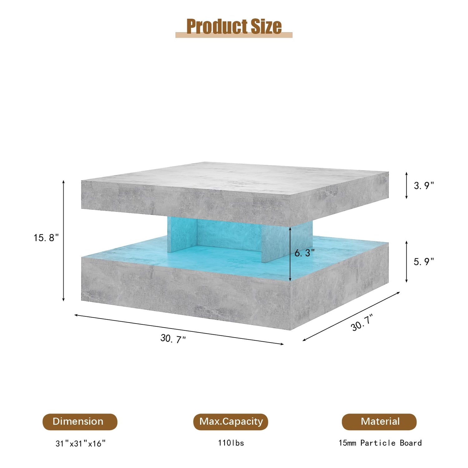 - Multi-functional Modern Wood Coffee Table with Lights: With its clear lines & contemporary design, this practical square LED center table for living room will bring charm, character & elegance to your living space. This 2-tier storage LED coffee table is suitable for various decor style in living room, lounge, office, meeting room, office & other home space.