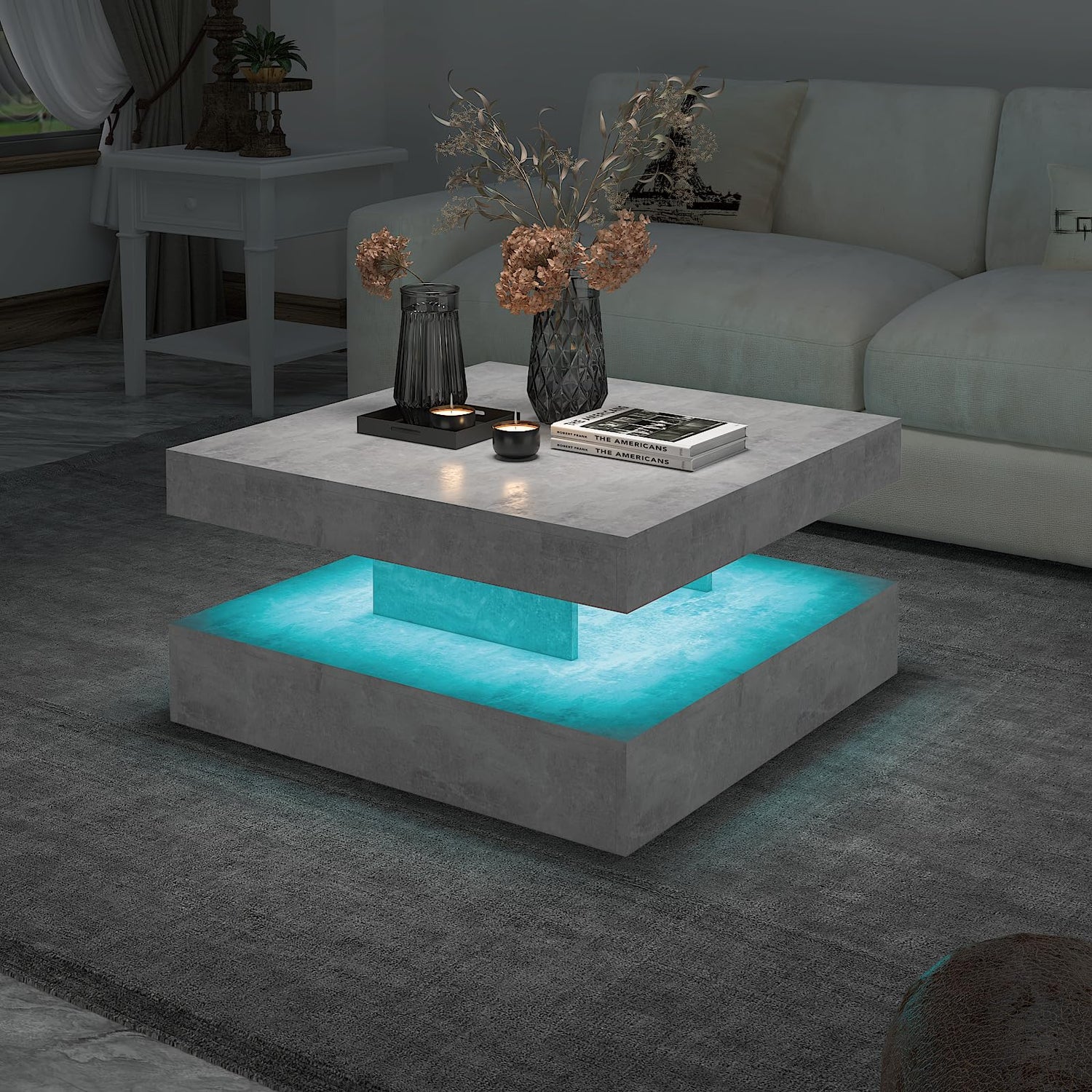 HedoAjim Grey LED Coffee Table for Living Room, Living Room Table 2-Tier Square Middle Center Table, Modern Coffee Tables with Storage, Contemporary Wood Tea Tables for Dining Reception