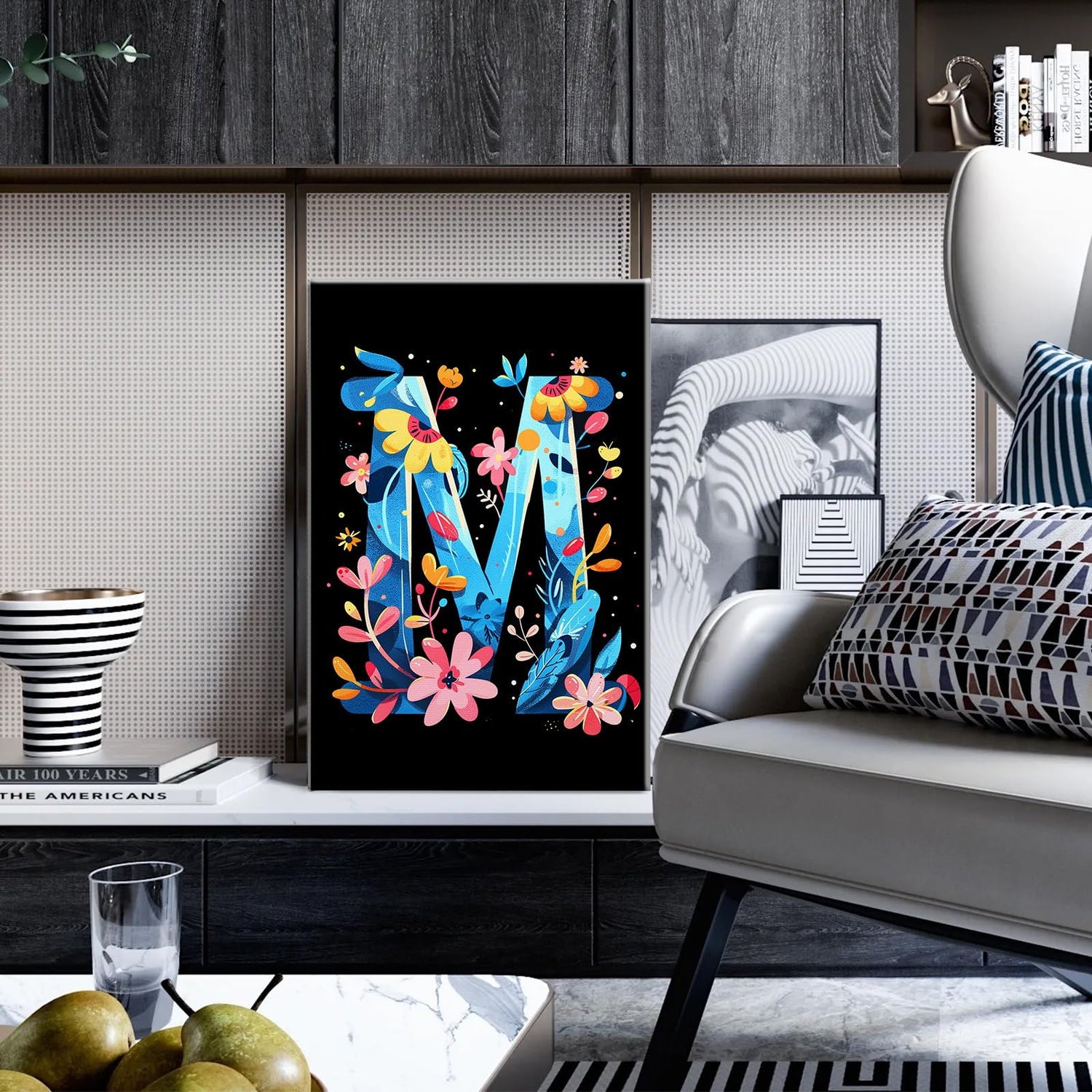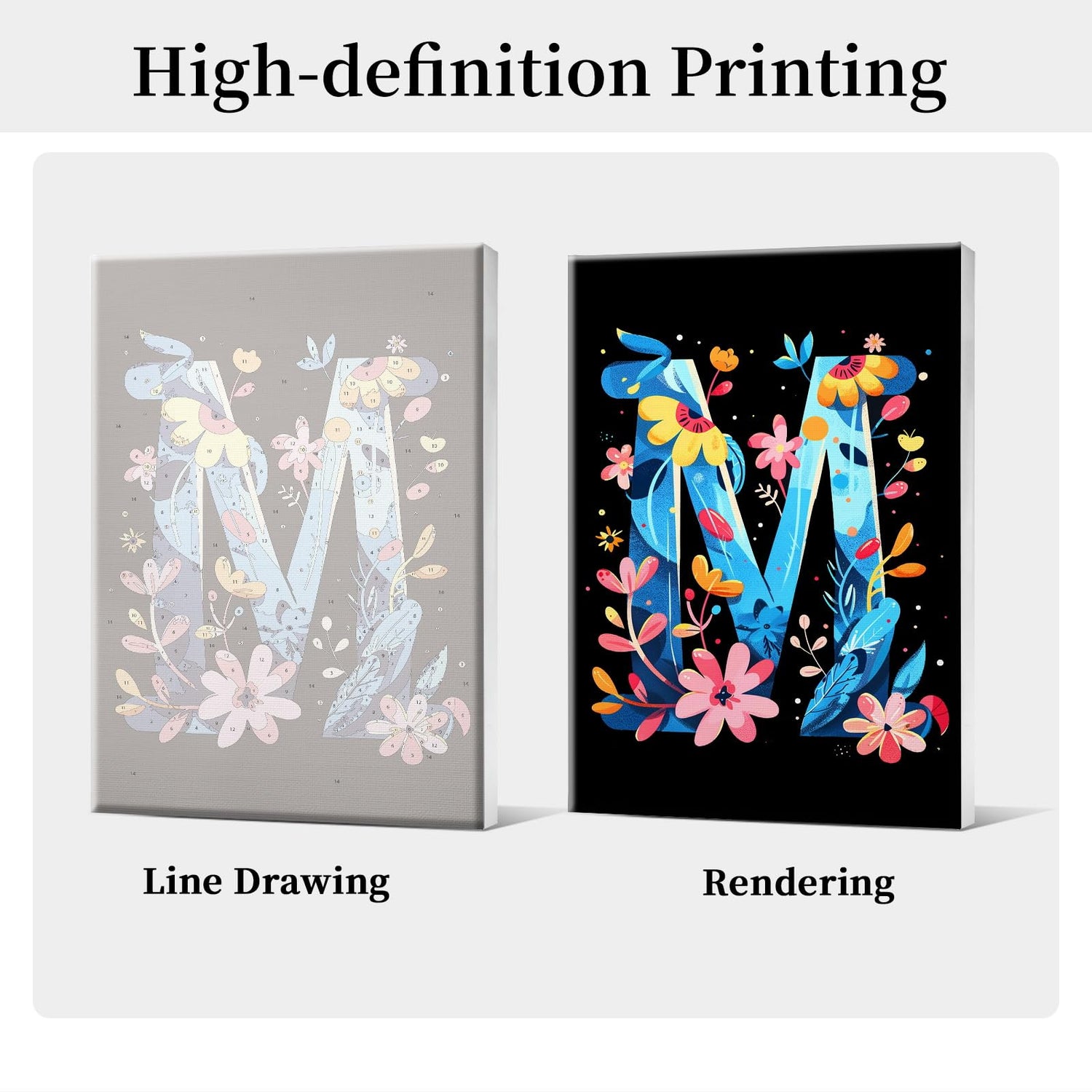 HeeBenor Easy Paint by Numbers Kit for Adults Beginner with Frame, DIY Letter Paint by Number with Easel, Adult Paint by Number Kits on Canvas Framed 8x12 Inch for Home Decor, M