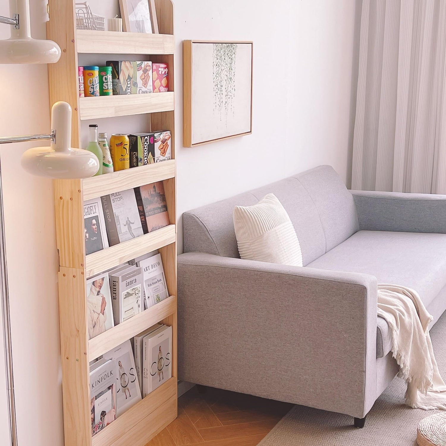 - [Various functions]: It can be used as a bookshelf, can also be used as a shelf to place all kinds of snacks and drinks and other miscellaneous items.