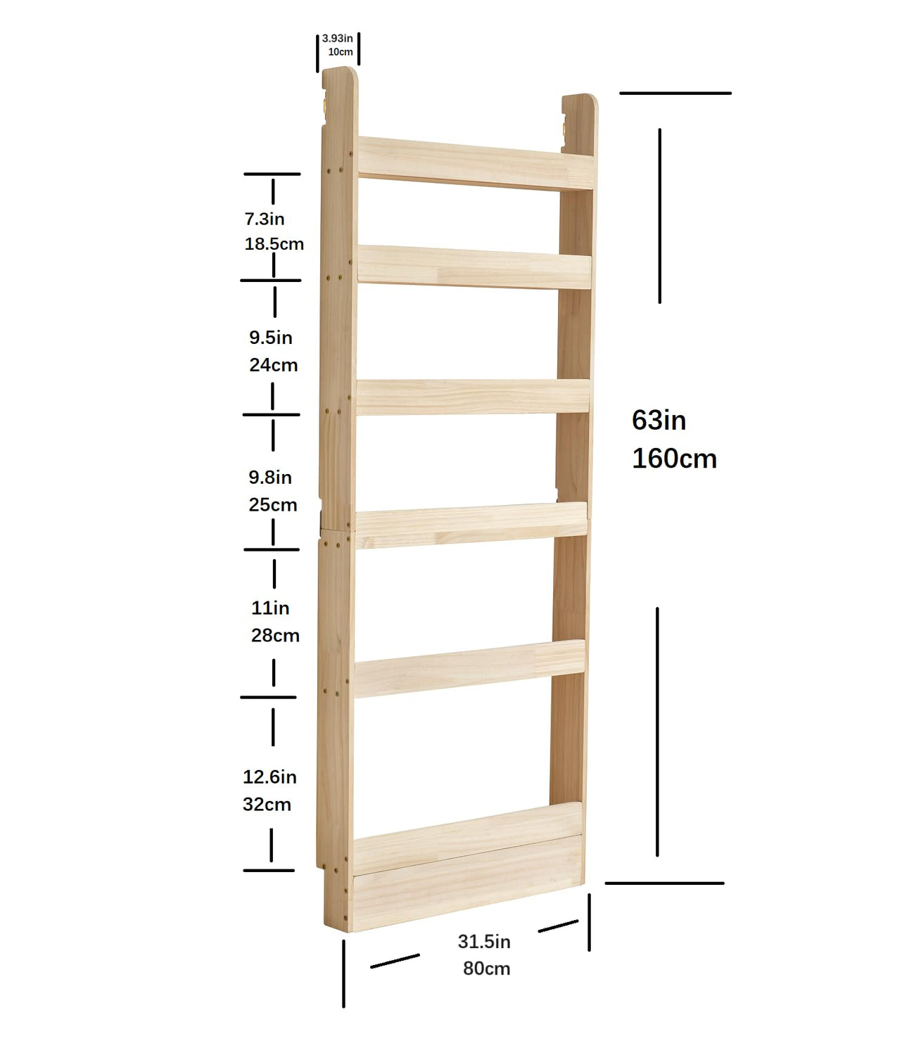 With dimensions of 31.5 inches in height, 3.93 inches in depth, and 63 inches in length, this slim-profile bookshelf occupies just 10 cm of width, making it an ideal choice for compact spaces. The design features six layers, each with varying heights, allowing you to store up to approximately 100 books efficiently.