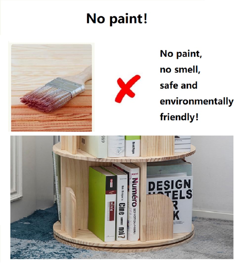 - Pretty stable: Once assembled, it is very stable, and it has been tested that children under the age of 14 cannot push it down. During the entire rotation process of the bookshelf, the bookshelf will not have any shaking.