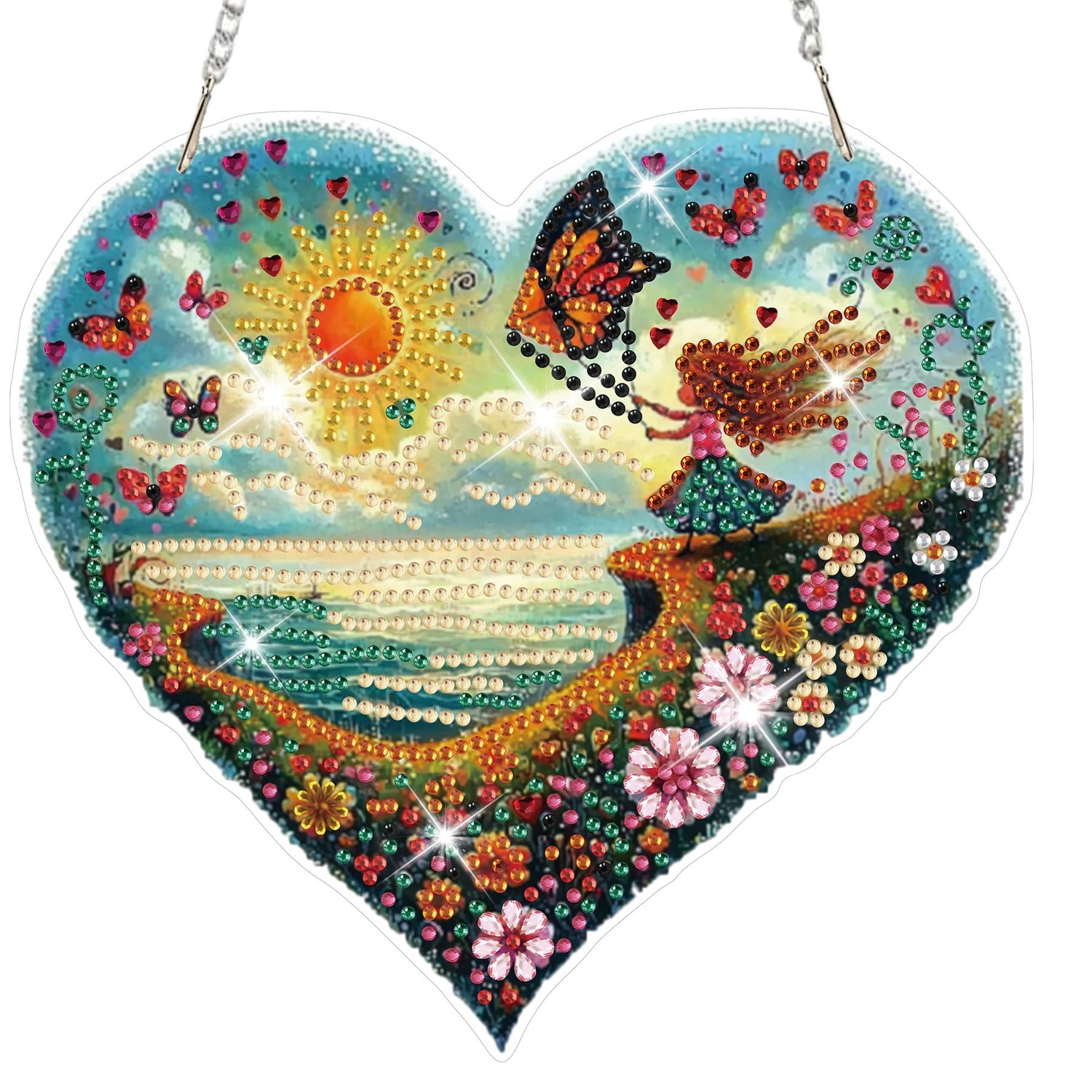 HEIBAGO Diamond Art Hanging Kits for Adults Kids, Hanging Diamond Art Beach Heart Shape, 5D Special Shaped Crystal Diamond Painting Kit, DIY Pattern Window Pendant for Home Wall Decor 8.3x8.3Inch