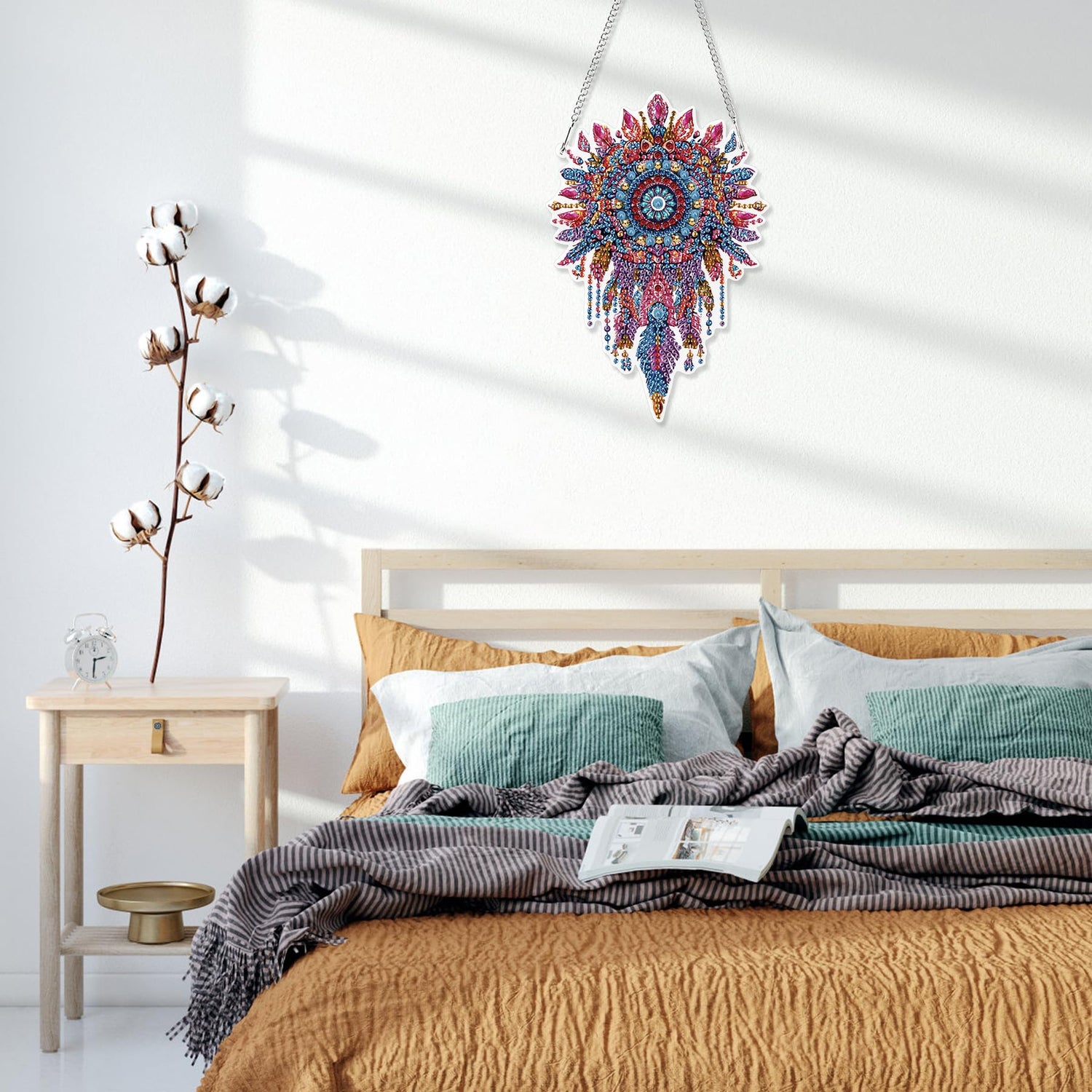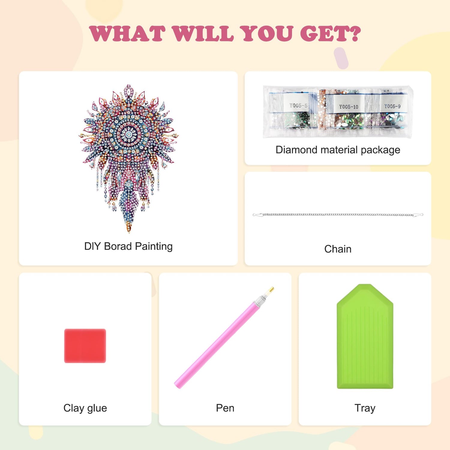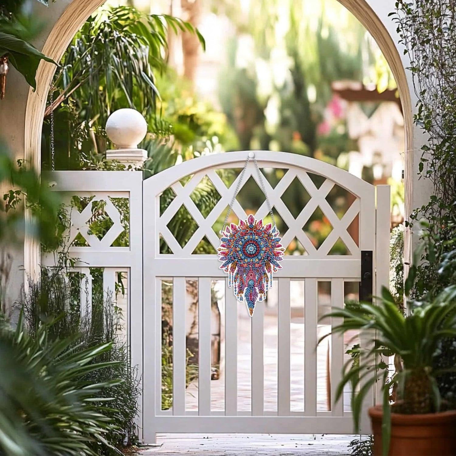 - Hanging Diamond Art Kits Incloude: The package includes 1x DIY Painting Board, 1x Chain, 1x Tool Pen, 1x Drill Tray, 1x Drill Mud, and Special-shaped Diamonds, Packaged by a Beautiful Box.Providing everything needed for hanging gem painting creation