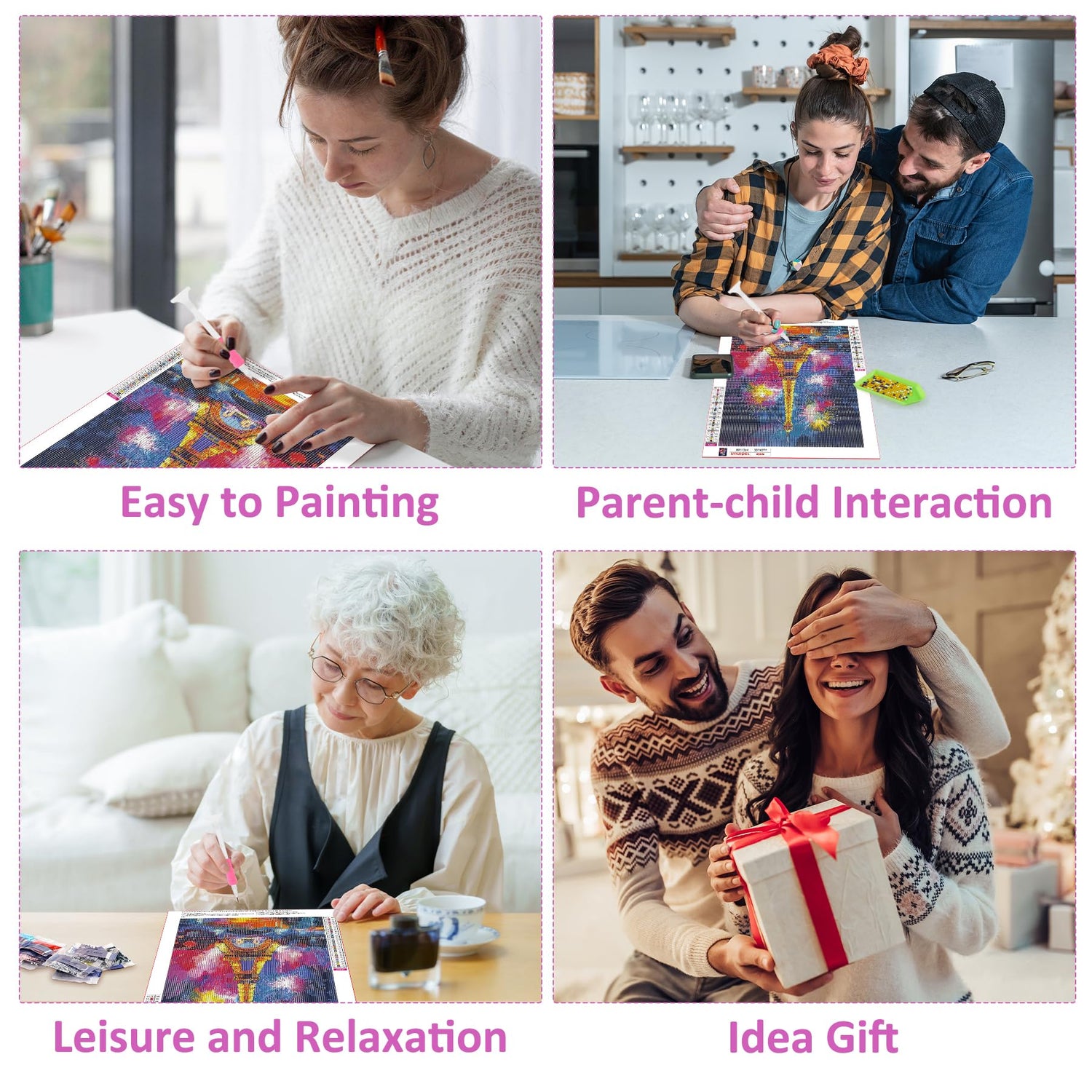 - Easy to Learn: Eiffel Tower diamond art kits are simple to use, making them accessible for people of all ages and skill levels, even those without any crafting experience