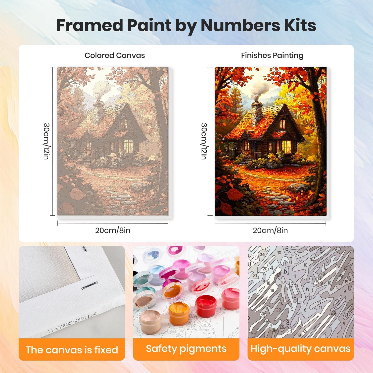 HEIBAGO Framed Paint by Numbers Kit for Adults, Fall Paint by Numbers for Beginner, Landscape Adult Paint by Number Kits on Canvas, Maple leaves painting by numbers for gift home wall decor 12*16 inch