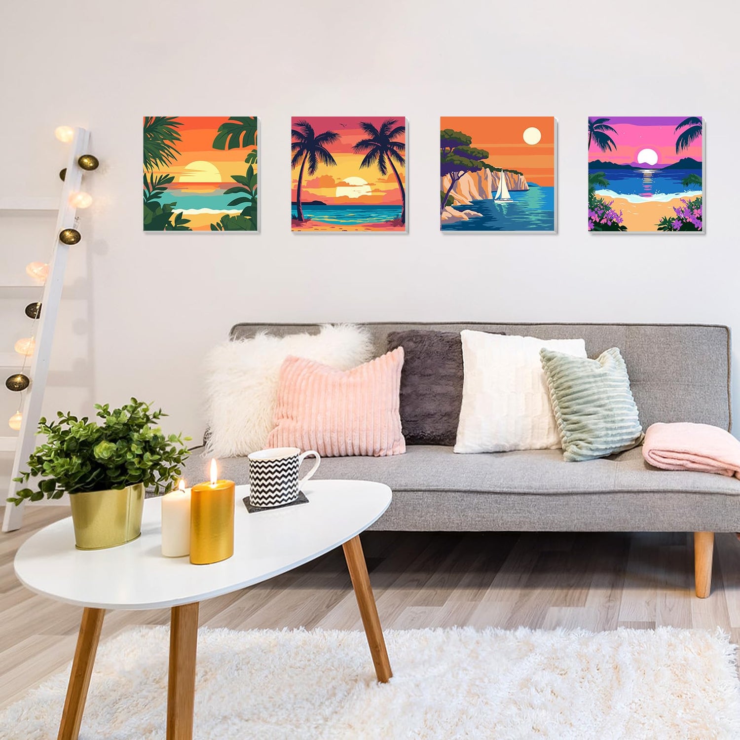 HEIBAGO Framed Paint by Numbers kit for Kids, 4 Pack Landscapes Paint by Numbers for Kids Ages 8-12, Sun Paint by Numbers Kits Children Beginner, DIY Acrylic Oil Painting for Home Wall Decor 8x8 inch