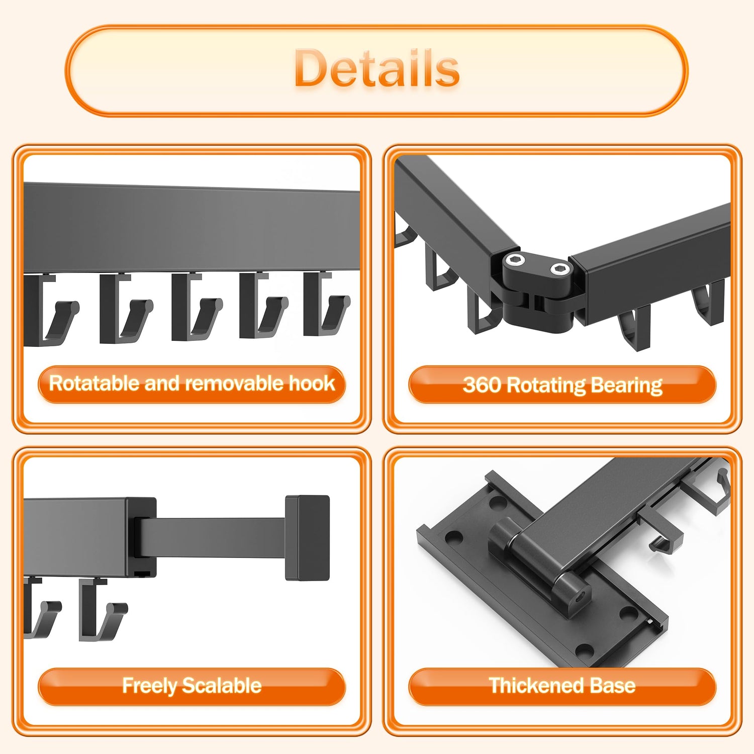 - 【You can hang objects directly without a hanger】 This clothing rack wall mount has 18 hooks.You can hang clothes or any objects directly without a hanger.When you unfold it against the wall,you can use it as an ordinary hook to hang clothes,Hats,keychains,bags,etc.