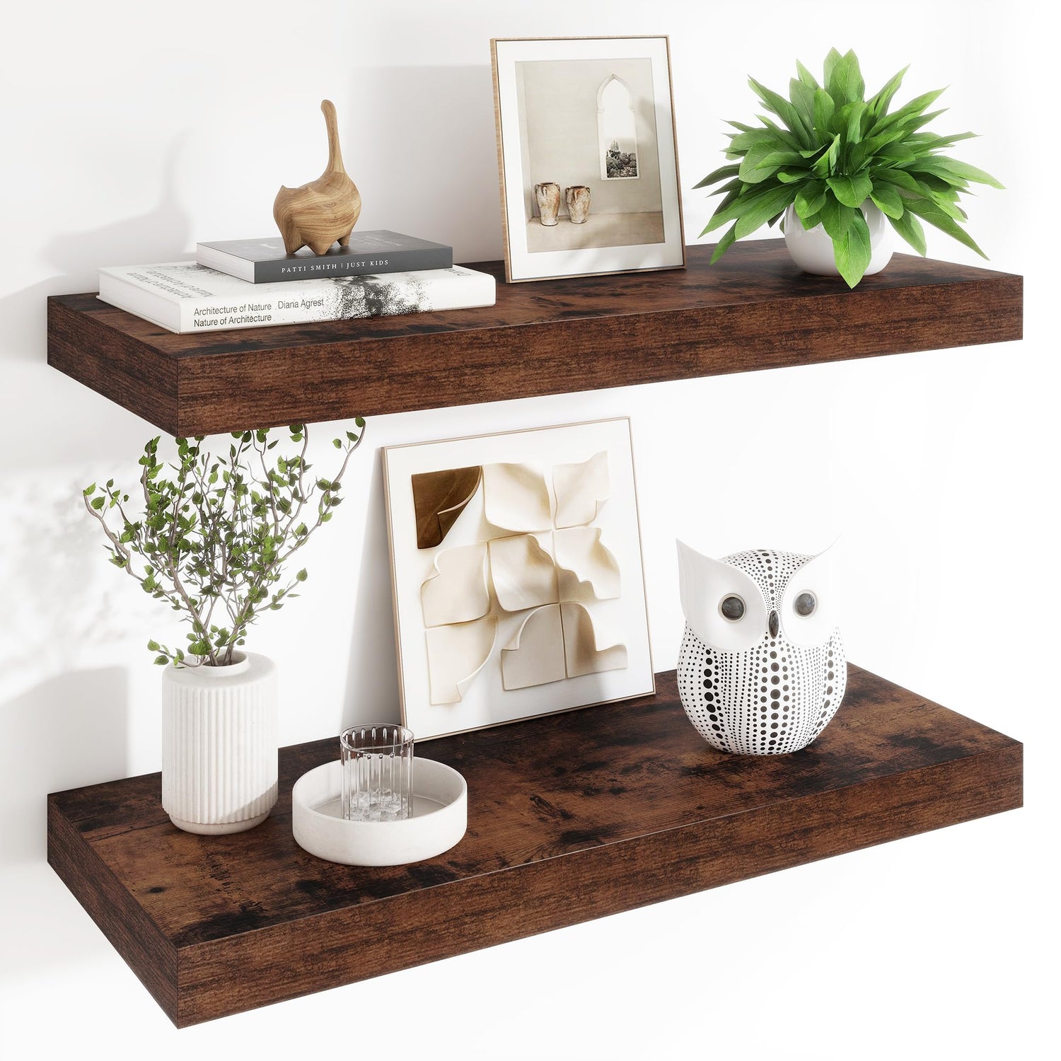 Heimlove 12" Deep Floating Shelves, 36 x 12 Inch Wall Mounted Long Floating Shelf with Invisible Brackets, for Home Decor, Bedroom, Kitchen, Living Room, Bathroom - 2 Pack, Rustic Brown