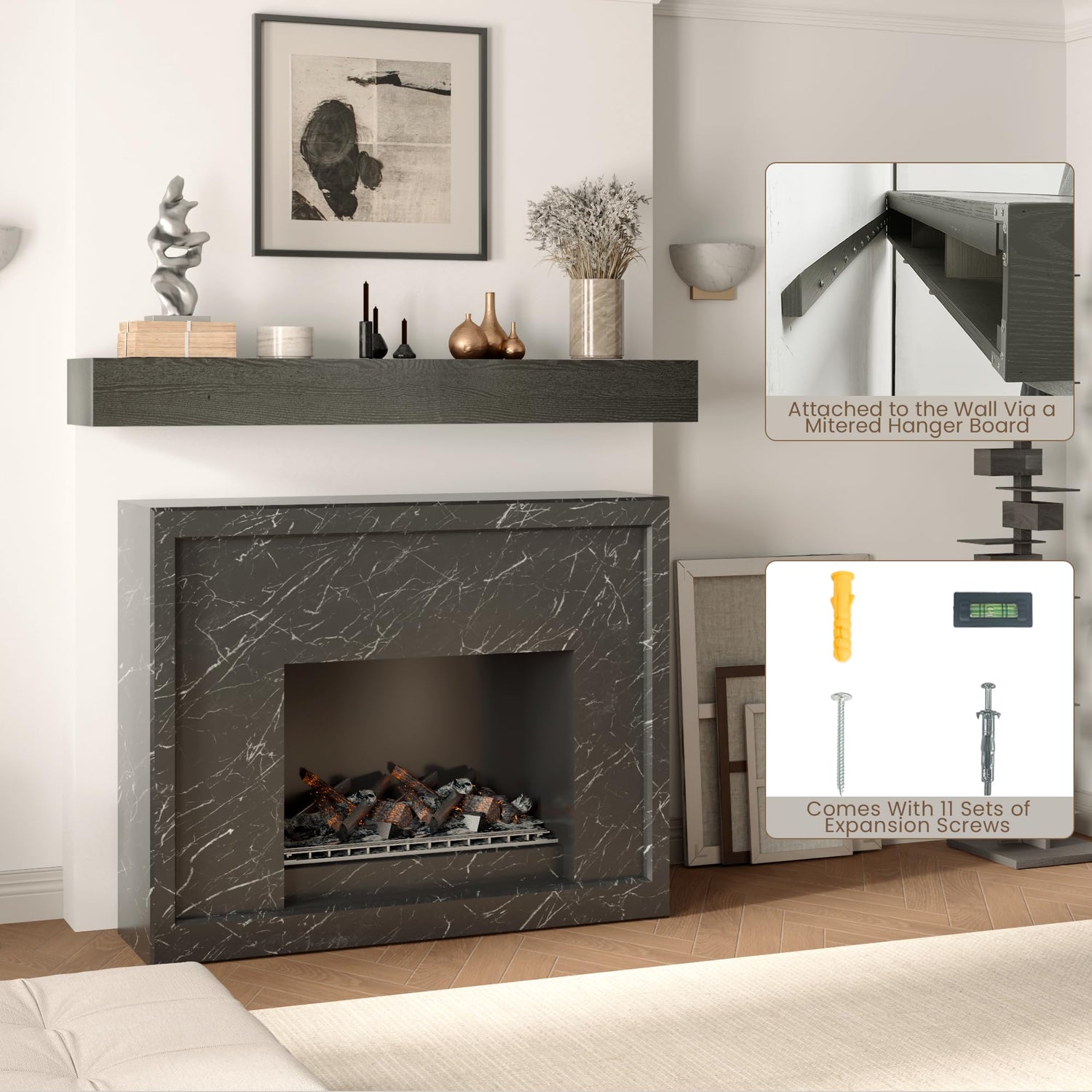 - 【Premium Craftsmanship】Although we use engineered wood,Unique design of corner reinforcement, the 60" Fireplace Mantel is more durable, our fireplace mantel features a smooth, water-resistant finish. but also distinctively beautiful, adding valuable wall space to your home.