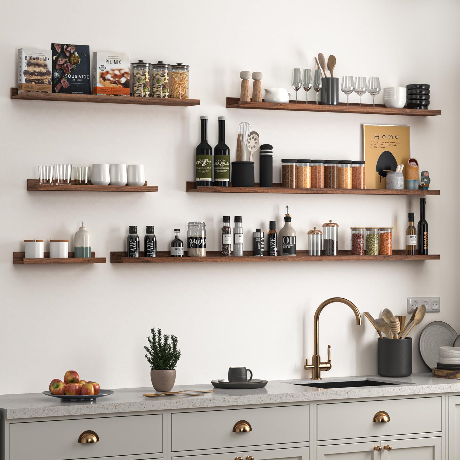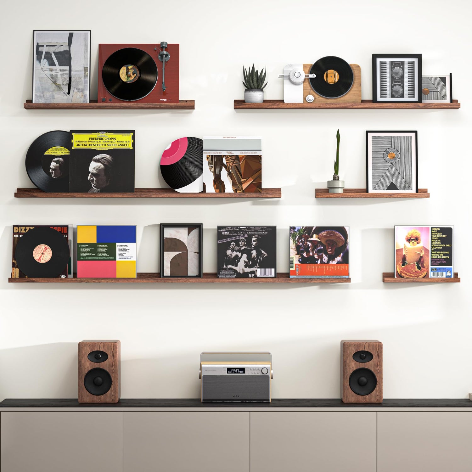 - Picture ledge Shelf for Walls: If you have dozens of pictures but don't know how to display them, Heimlove picture ledge shelves(especially large size) for walls are perfect! With our hanging shelves, store and display different types and sizes of photo frames in one place. The ledge in front of the wall shelves could prevent your precious items from falling off.