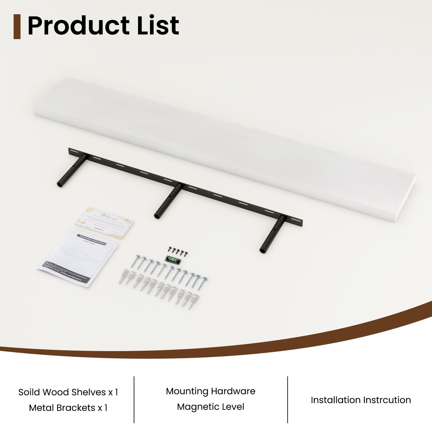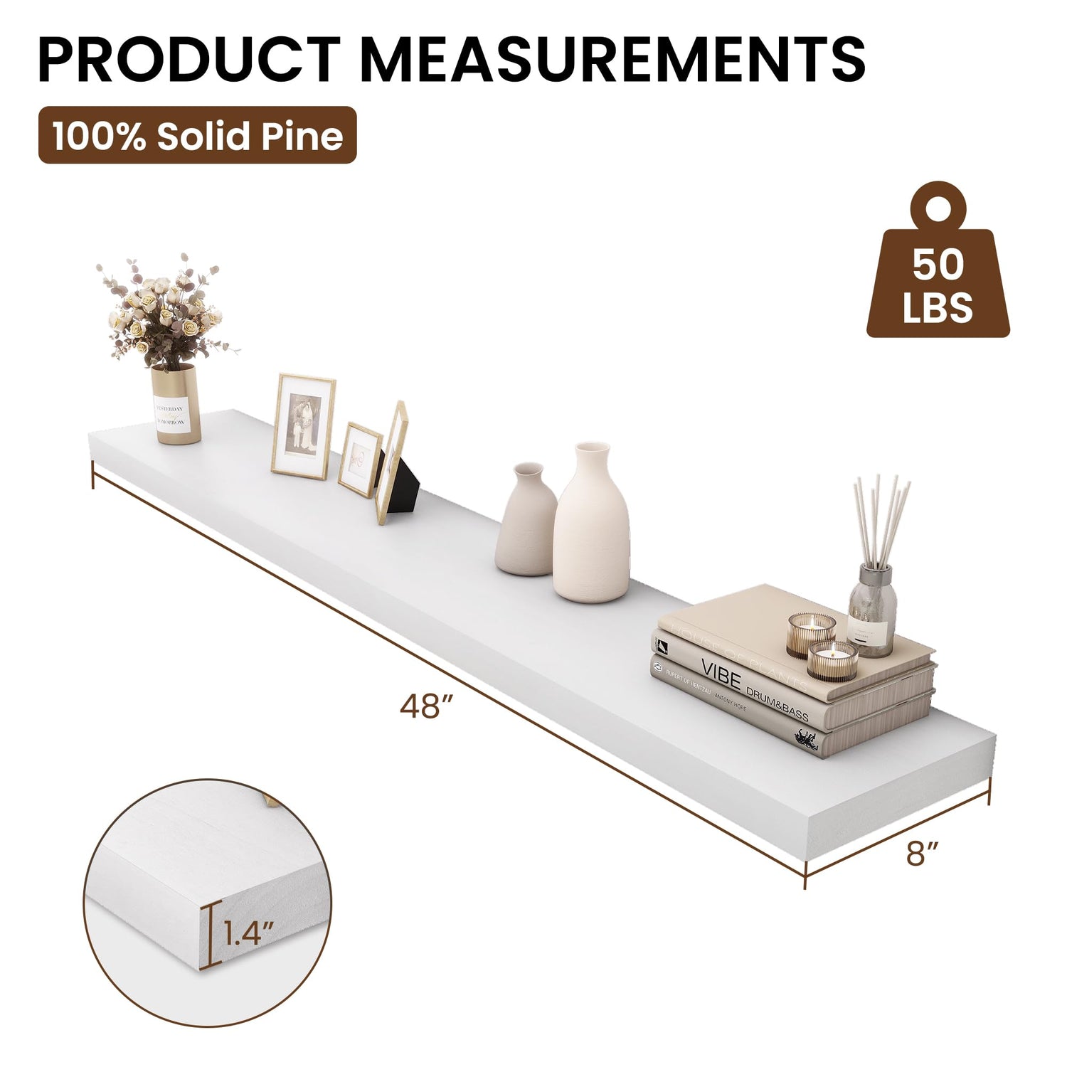 Heimlove Wood Floating Shelves for Wall,Fireplace Mantel Shelves,Rustic Farmhouse Floating Shelves 48 inch,Solid Pine Wood Wall Shelf for Bathroom,Bedroom,Living Room,Kitchen,Office Decor-White