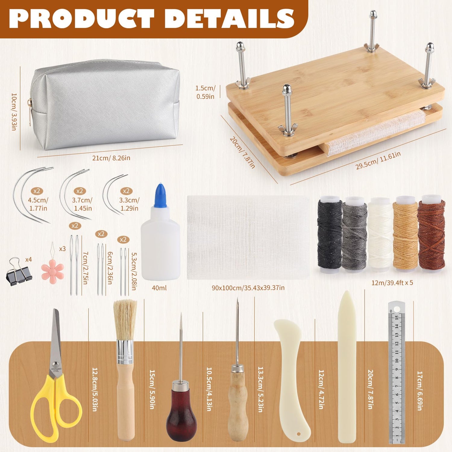 - 【Fully Configured】 Our book binding kits come with everything you need for bookbinding, including an 11.6 x 7.8inch book press, and a variety tools of book binding materials such as waxed thread, bone folder, book cloth, large-eye needles, awls, and everything else you'll need, all neatly organized in a convenient storage bag.
