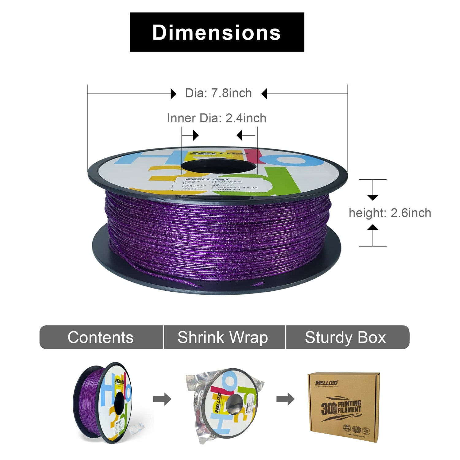 HELLO3D Purple Glitter PLA Filament 1.75mm, 3D Printing Sparkly Shining PLA Filament 1KG/Spool, Starry Sky Flash Surface, Dimensional Accuracy +/- 0.05 mm, Compatible with Most FDM 3D Printers/Pens