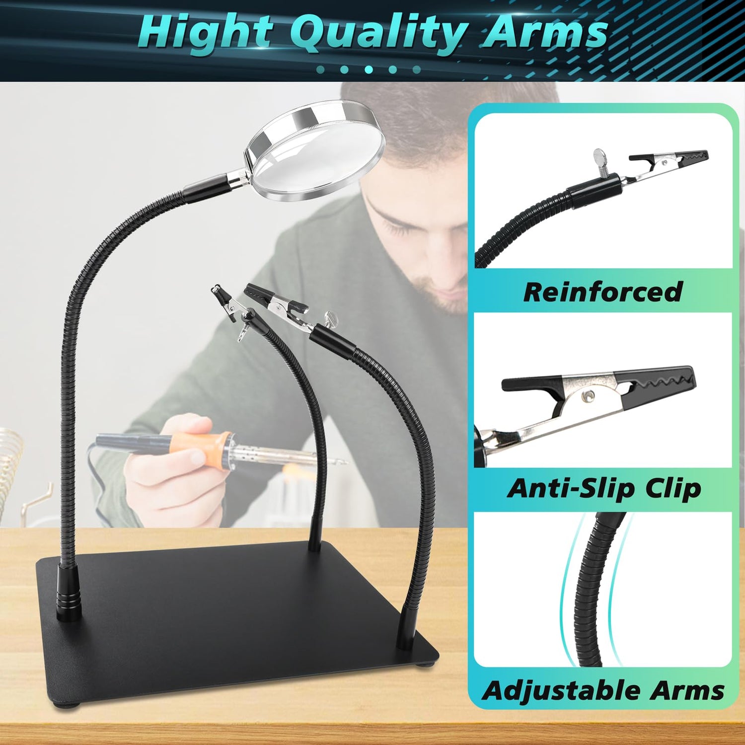 Helping Hands Soldering Station with 6X Magnifying Glass, Magnifier with 2 Adjustable Arms Solder Helping Hands, Soldering Holder Third Hand Tool for Electronic Repair Soldering Crafts Jewelry DIY