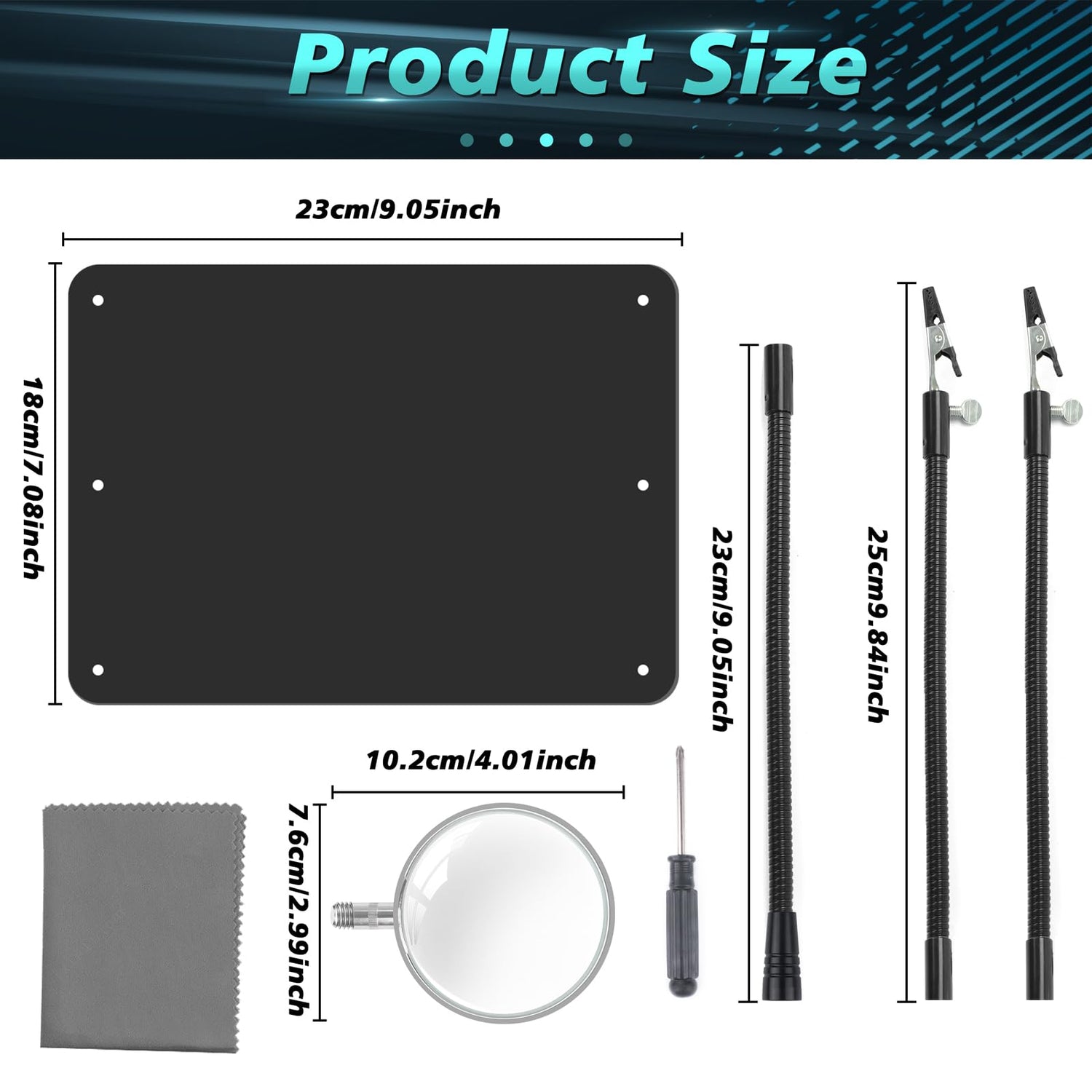 - Package Included: 1 x solid steel metal base, 1 x 6x soldering magnifying glass, 2 x flexible metal arms with 2 x alligator clips and 1 x mini screwdriver.