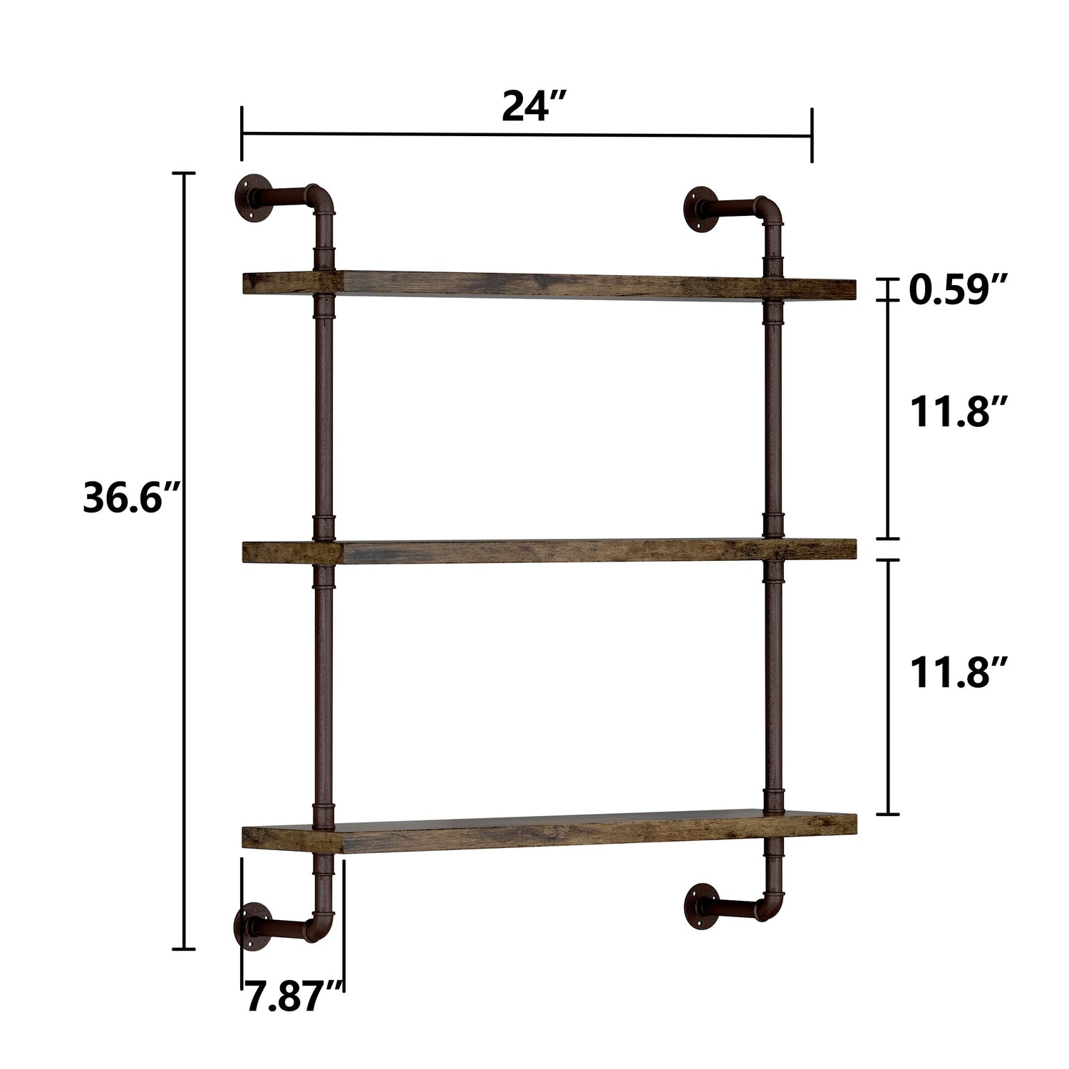 Helsin 3 Tier Industrial Pipe Shelf Rustic Wood Floating Shelves,Wall Display Bookshelf,Storage Rack Sundries Holder for Kitchen Office Bathroom Organization and Home Decor (24inch)