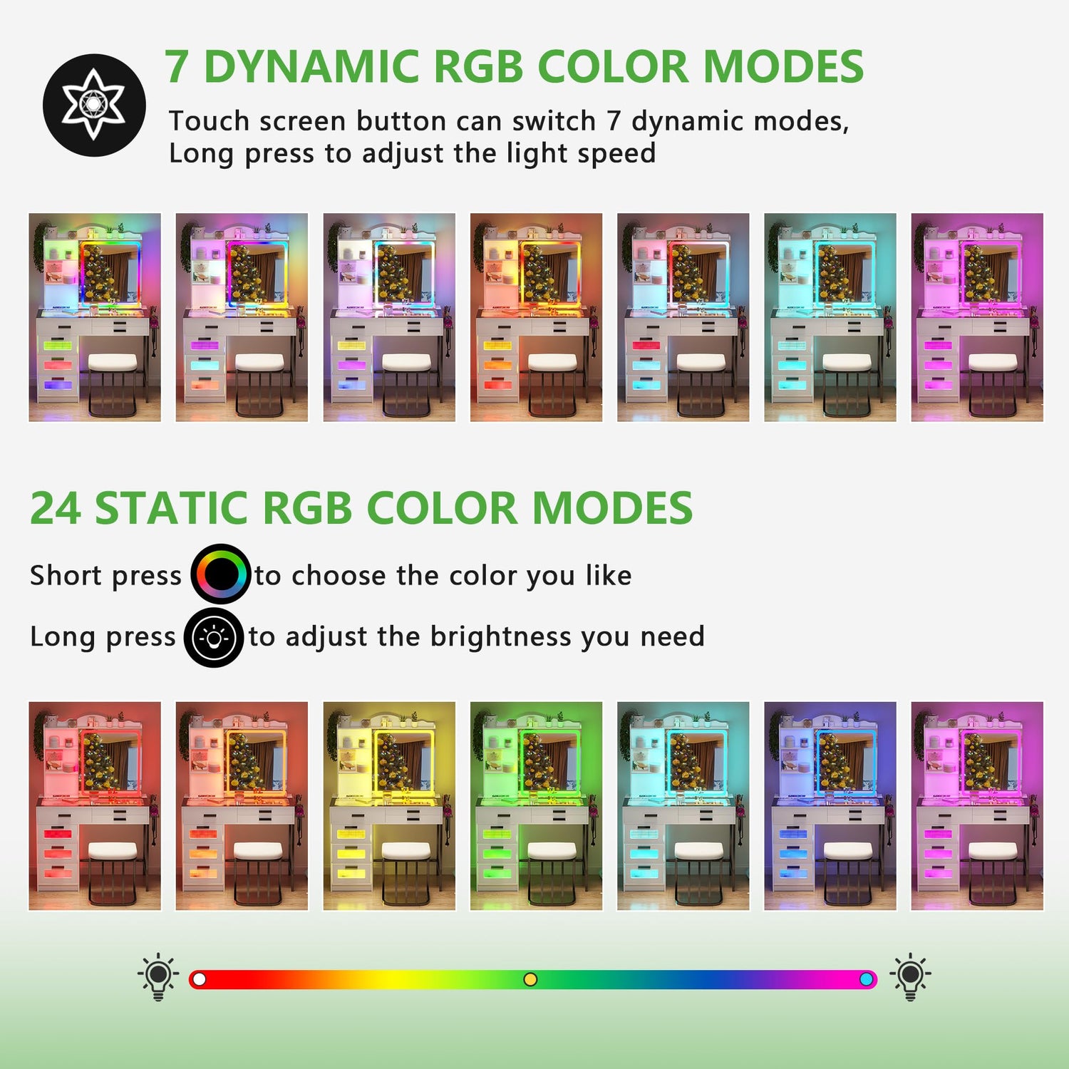 - đșăRGB Lightingă Dresser comes with dynamic and static lighting and a remote control allowing you to control it remotelyïŒYou can also feel the light in your body.