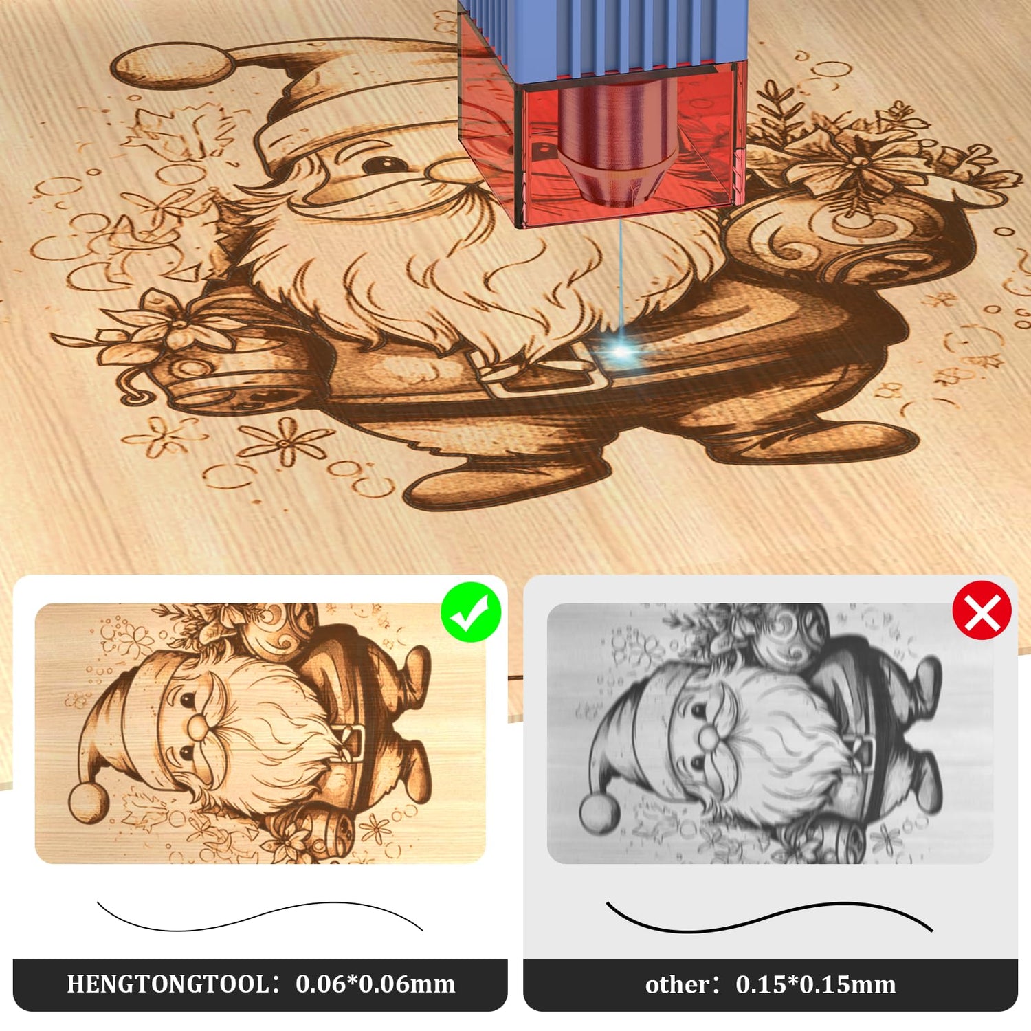 - 【High Precision Engraving】 HENGTONGTOOL T1 laser cutter and engraver machine adopts a new spot compression technology of 0.06x0.06mm, which makes it easy to accurately engrave on 600+ materials. And equipped with 3.5W laser module, it can easily cut 3mm basswood and 2mm acrylic to meet the diversified needs of artistic creation, handmade and commercial customization.