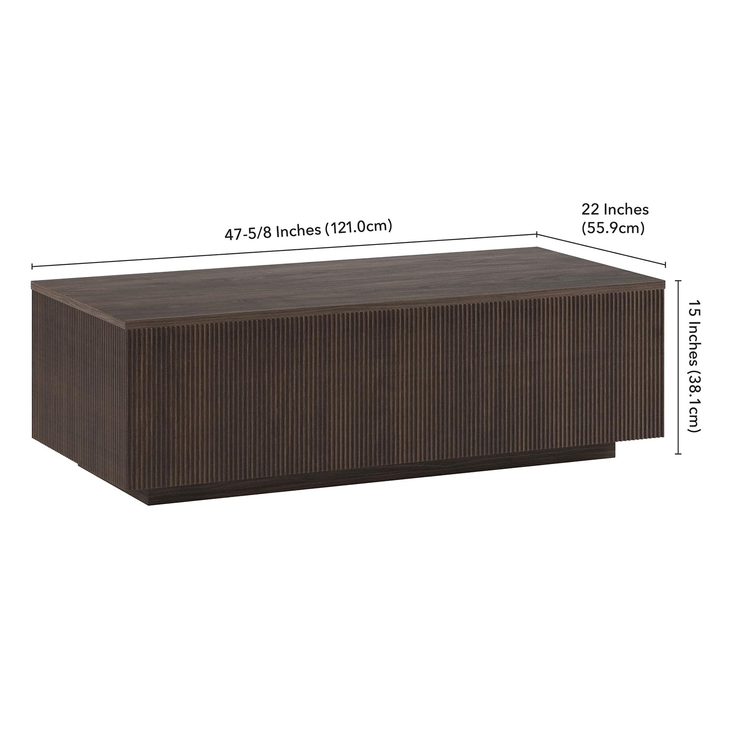Henn&Hart 48" Fluted Rectangular Low-Profile Coffee Table for Living Room, Family Room, or Office, Alder Brown