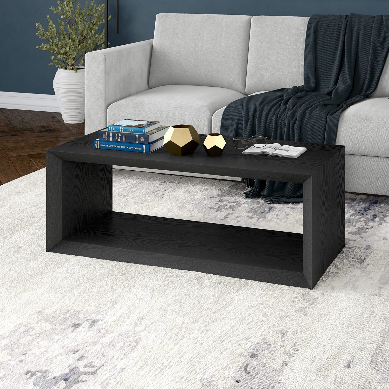 Henn&Hart 48" Wide Rectangular Coffee Table in Black Grain, for Home, Living Room, Bedroom, Entertainment Room, Office