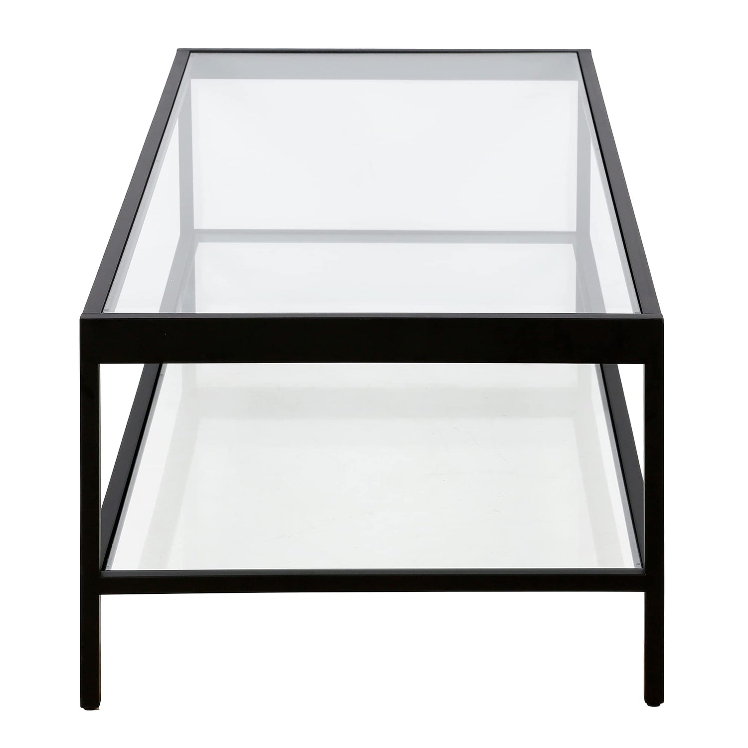 Details: Coffee Table : Clean, minimalist lines and sturdy tempered glass make this round coffee table perfect for your contemporary living room. Proudly display knick-knacks, magazines and more on the clear glass top and lower shelf. Go modern in blackened bronze or add a bit of understated glamour with a golden brass finish.