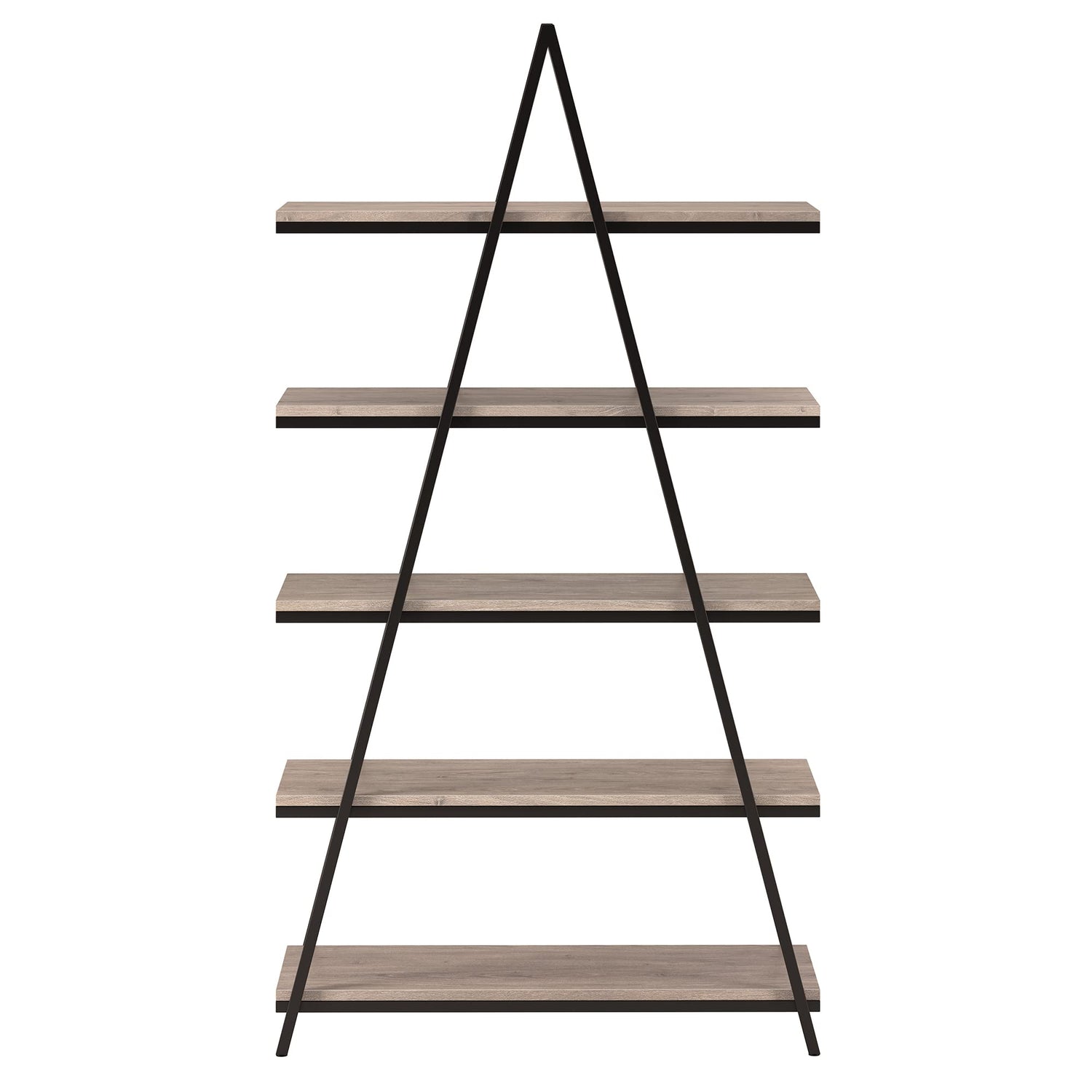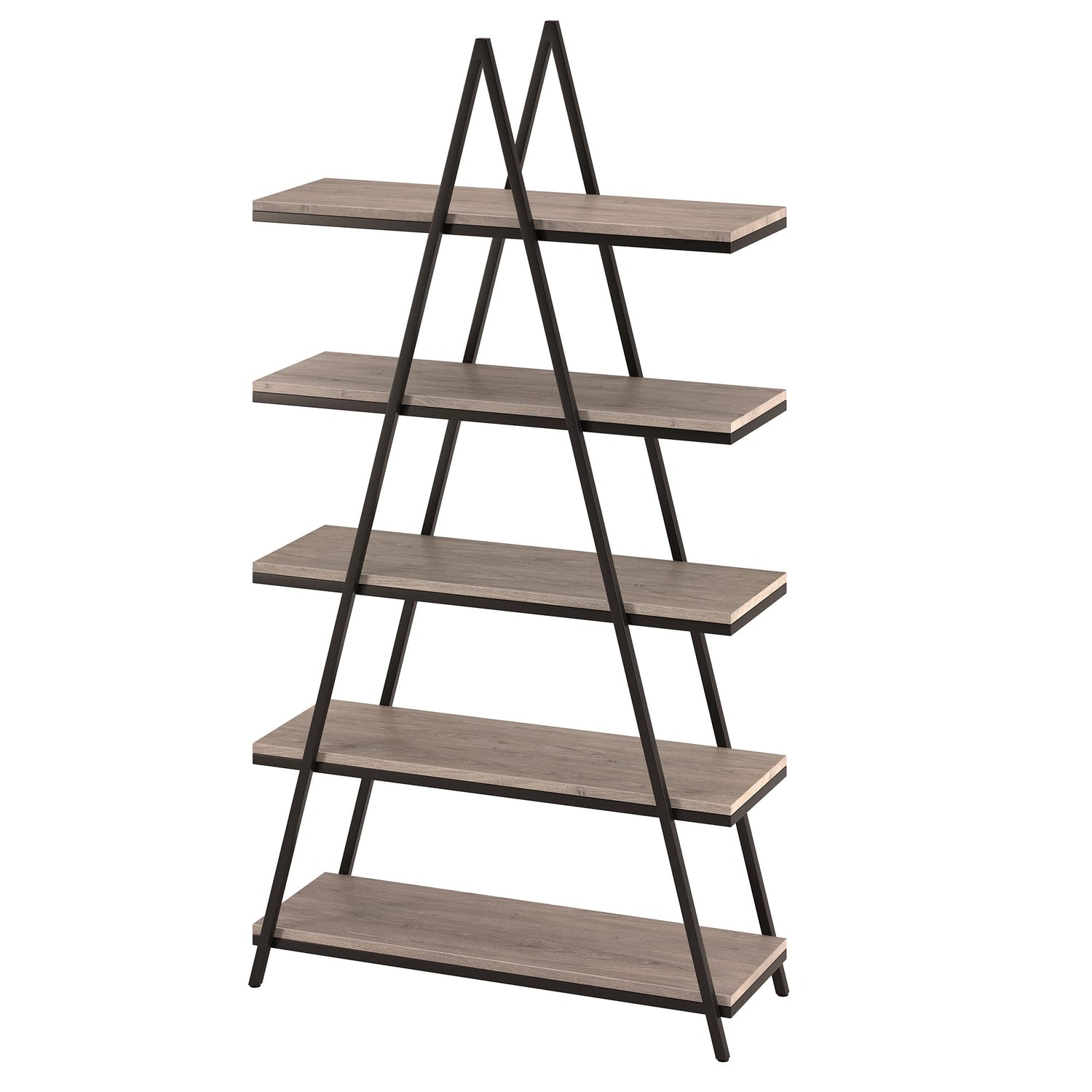 Henn&Hart 68'' Tall A-Frame Bookcase in Blackened Bronze/Antiqued Gray Oak, for Home, Living Room, Bedroom, Entertainment Room, Office
