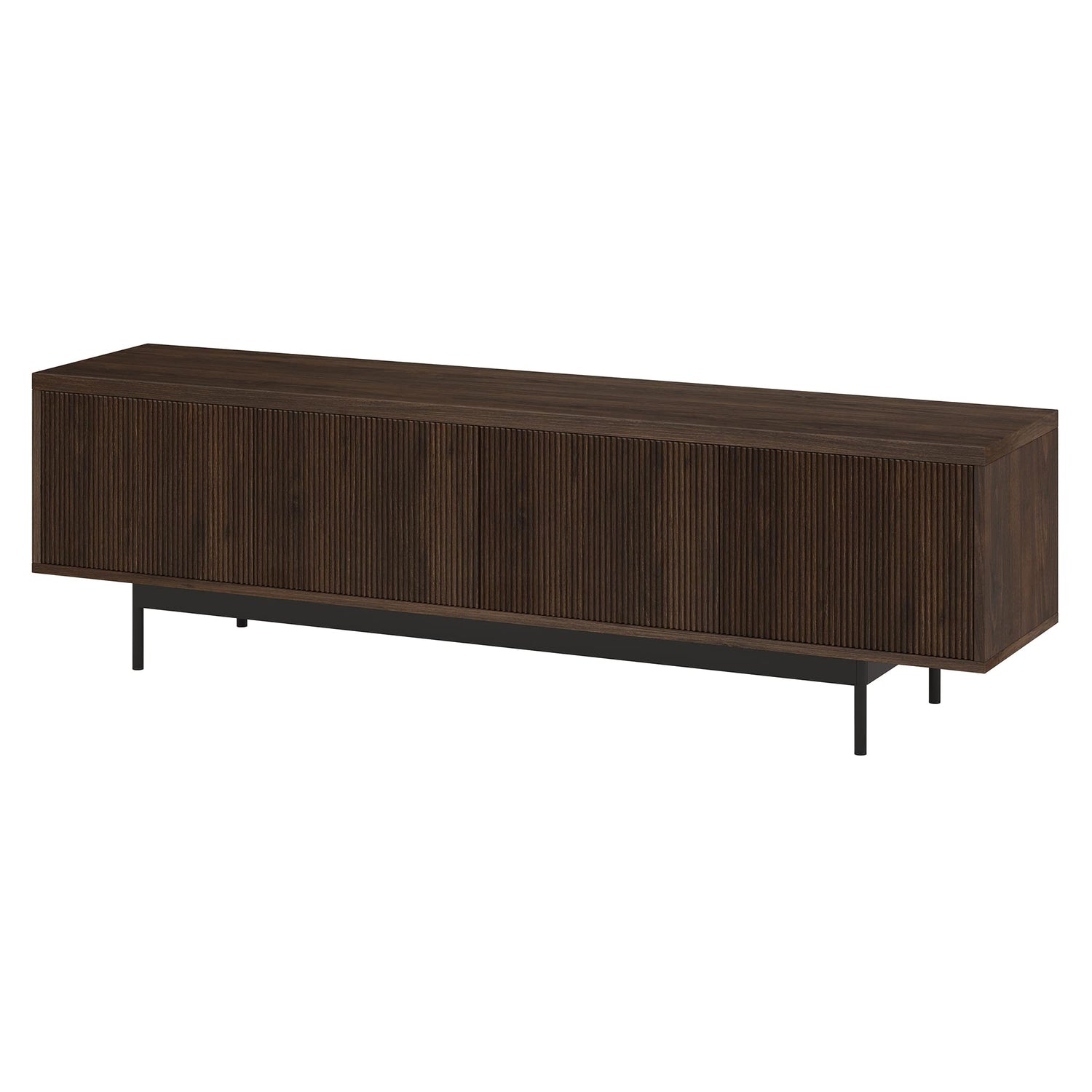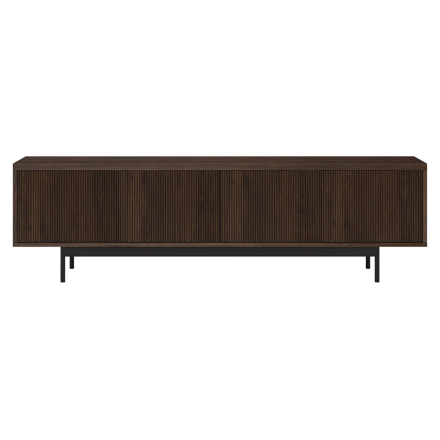 Details: On-trend texture and design combine in this modern TV stand. With a wood grain finish and textured doors, this piece is perfect for your mid-century or minimalist-inspired living room, den, or game room. It's low 20" height leaves plenty of room above for an oversized wall-mounted TV or set of statement lamps. This stand features cable-management cut-outs and 4 fully enclosed doors with an open inside area, allowing for free-form storage of your devices, games, books, and more.