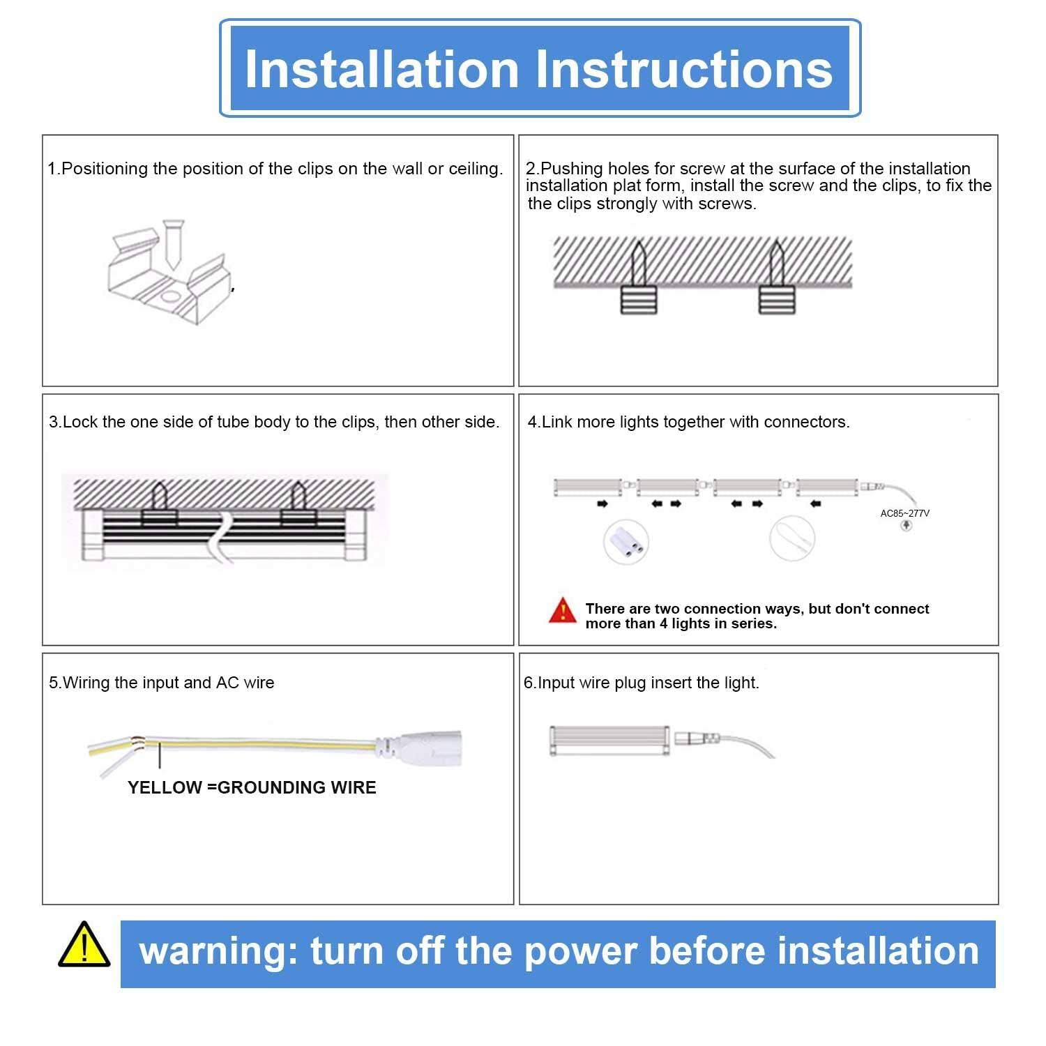 • 【EASY INSTALLATION】- These LED shop lights could plug and Play. Sufficient screws,mount clips,etc. Installation accessories will help you to install quickly and easily. you could link up by connecting cords. Reducing your installation and wiring cost and time.