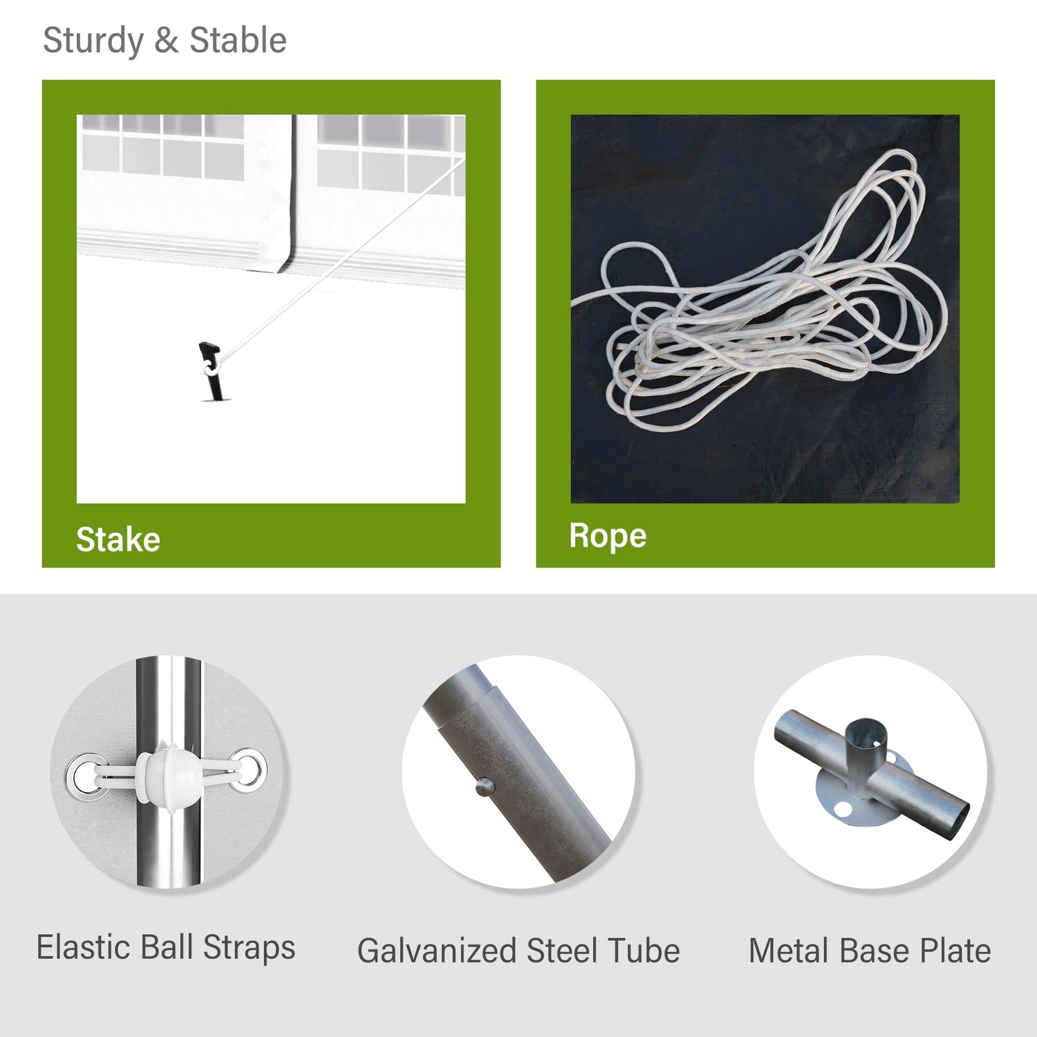 - 【Warm Tips】Event tent is suitable for use when the weather is sunny rather than extremely bad. Moreover, heavy duty party tent is not fireproof, please keep it away from fire source.