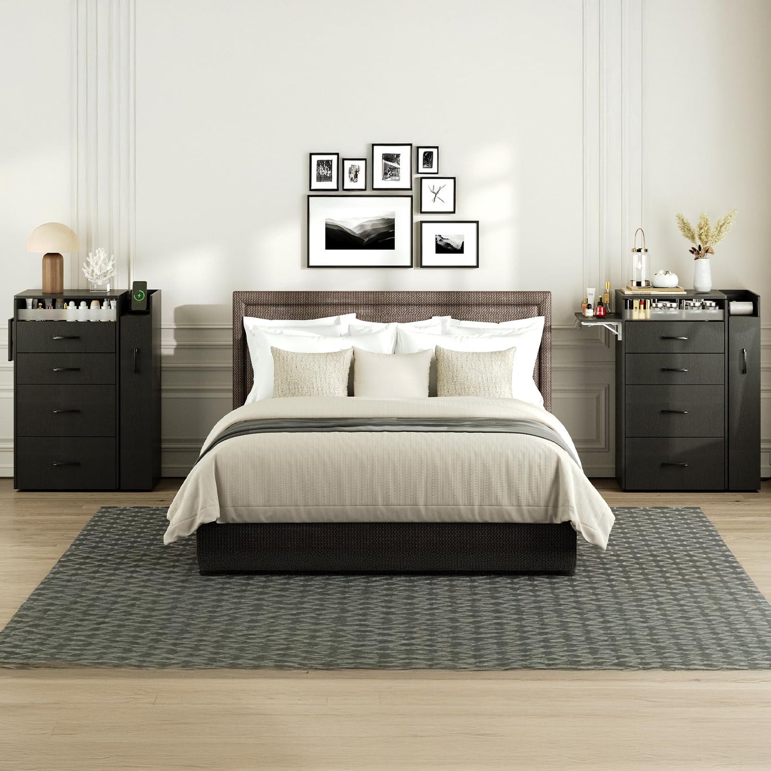 - [Versatile 3-in-1 Vanity] This 3-in-1 vanity desk combines beauty, storage, and practicality. Featuring a flip-top mirror with tri-tone LED lights, it transforms effortlessly between a makeup dresser, a compact nightstand vanity, and a workspace. With Three drawers, a sliding cabinet, and a foldable side tabletop, it provides ample storage for all your beauty and daily essentials.