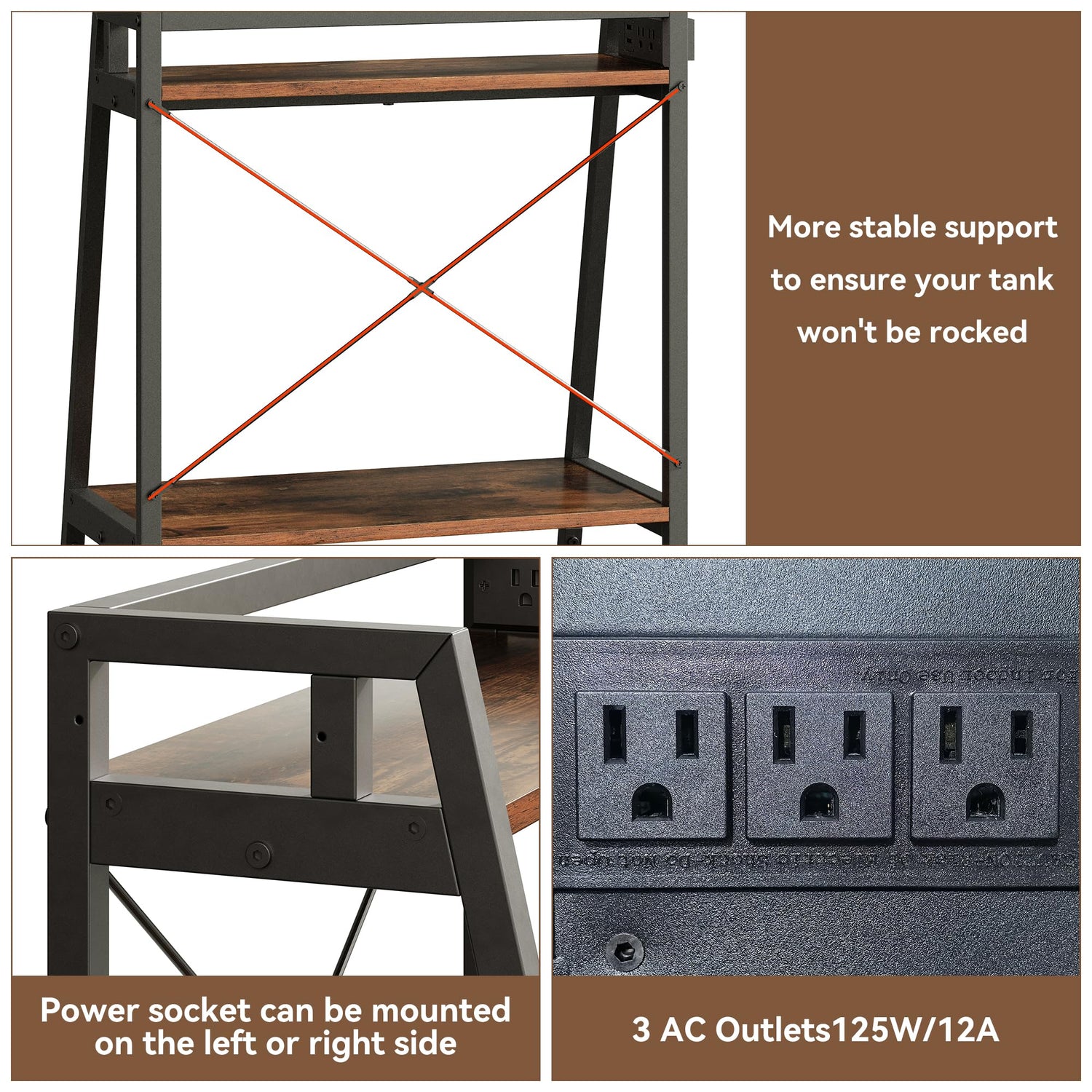- Built-In Power Outlet - For added convenience, a power outlet is located on the side of the top tier, providing plug-and-play electrical support for your aquarium equipment. Whether it's a water pump, lighting, or filtration system, you can connect them anytime, making your aquarium system management more efficient and aquarium care simpler.