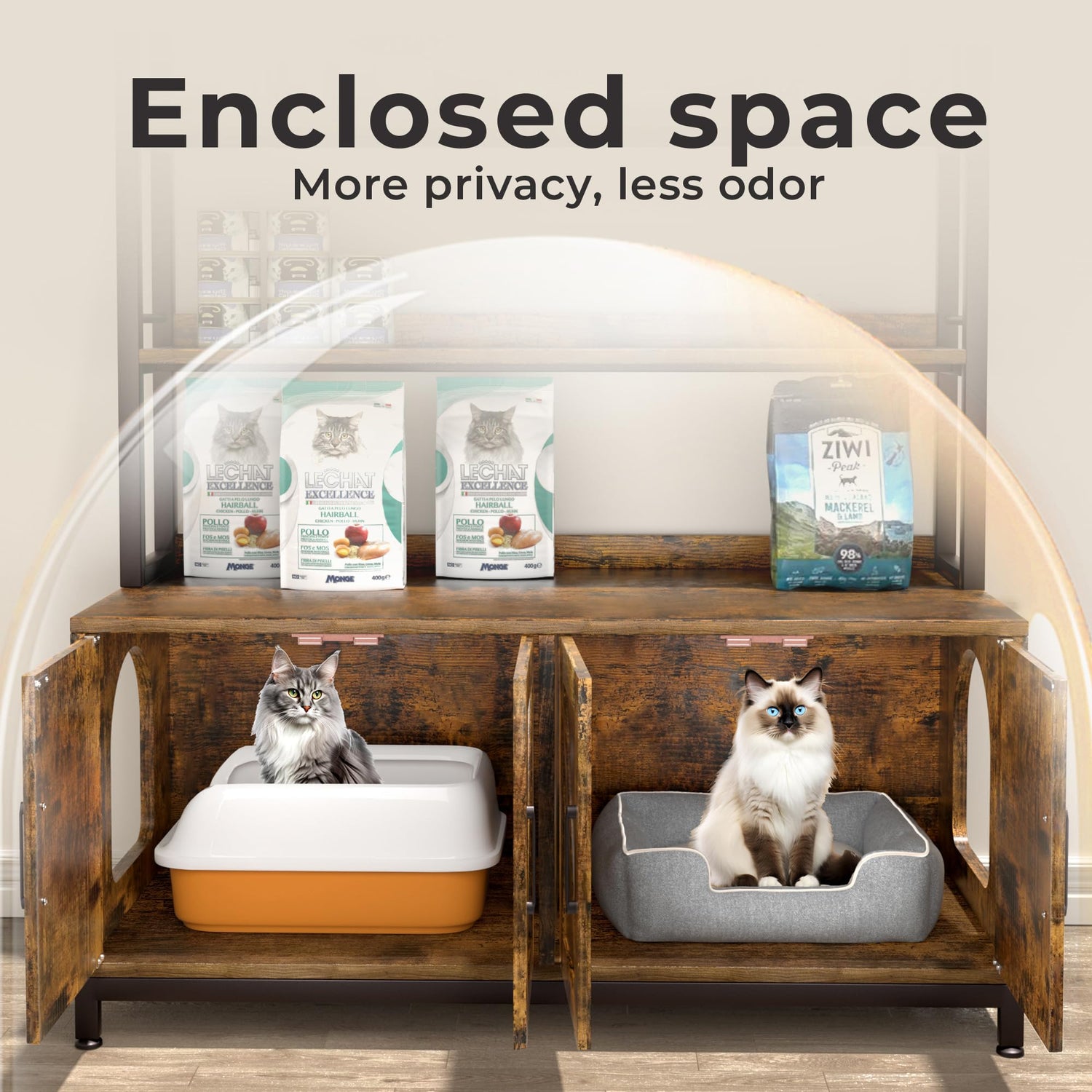 - Spacious Interior Space: Our cat litter box enclosure is designed to comfortably accommodate two cats, with each cabinet measuring 22.83" L*19.29" W*15.55" H, making it suitable for most litter boxes. The overall dimensions : 47.24" L*19.68" W*59.64" H.