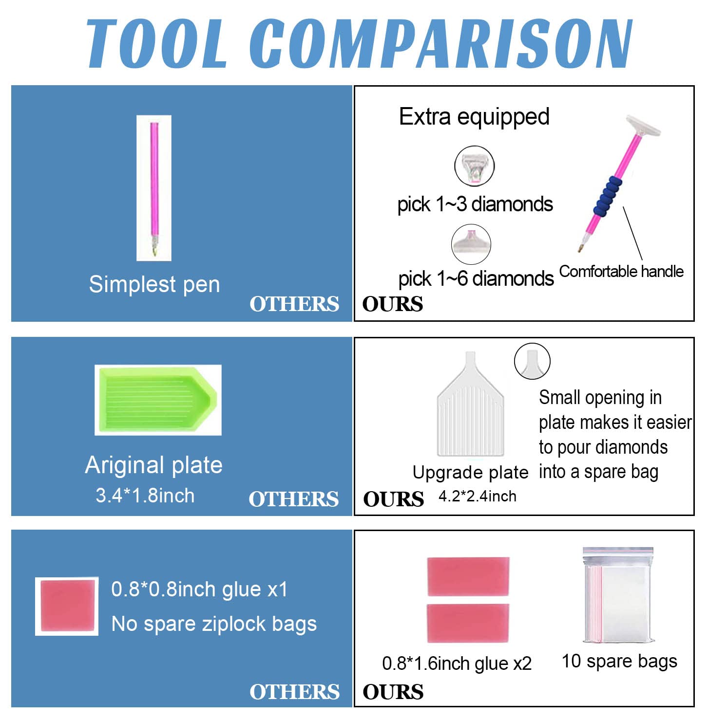 - 【Diamond Painting Kits】Include 1*HD print canvas,1*pen,1* 3-drill pen tip,1* 6-drill pen tip,4*glue, 1*plate,10*spare ziplock bags and sufficient number of round diamonds.