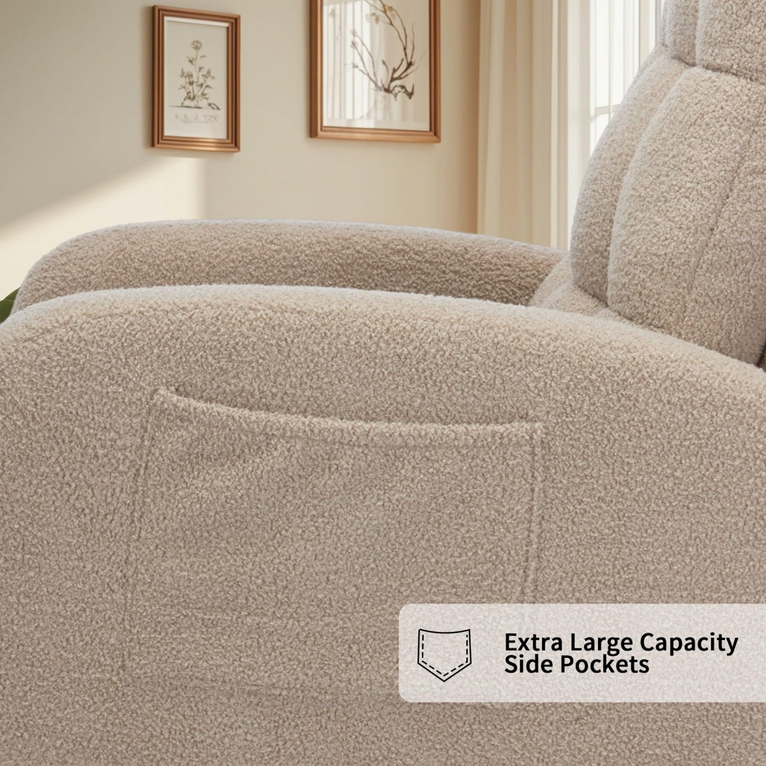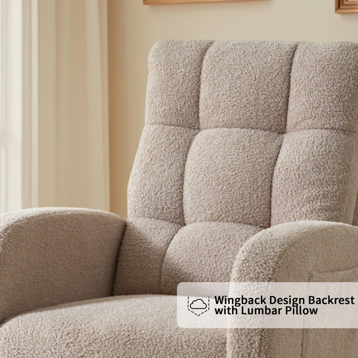 - Soft Fabric Practical Side Pockets: made of high quality polyester fiber, the surface is breathable and easy to take care of. Simple colors and smooth lines give the rocking chair a stylish and modern look. Pockets on the armrest side for storing magazines and remote control.