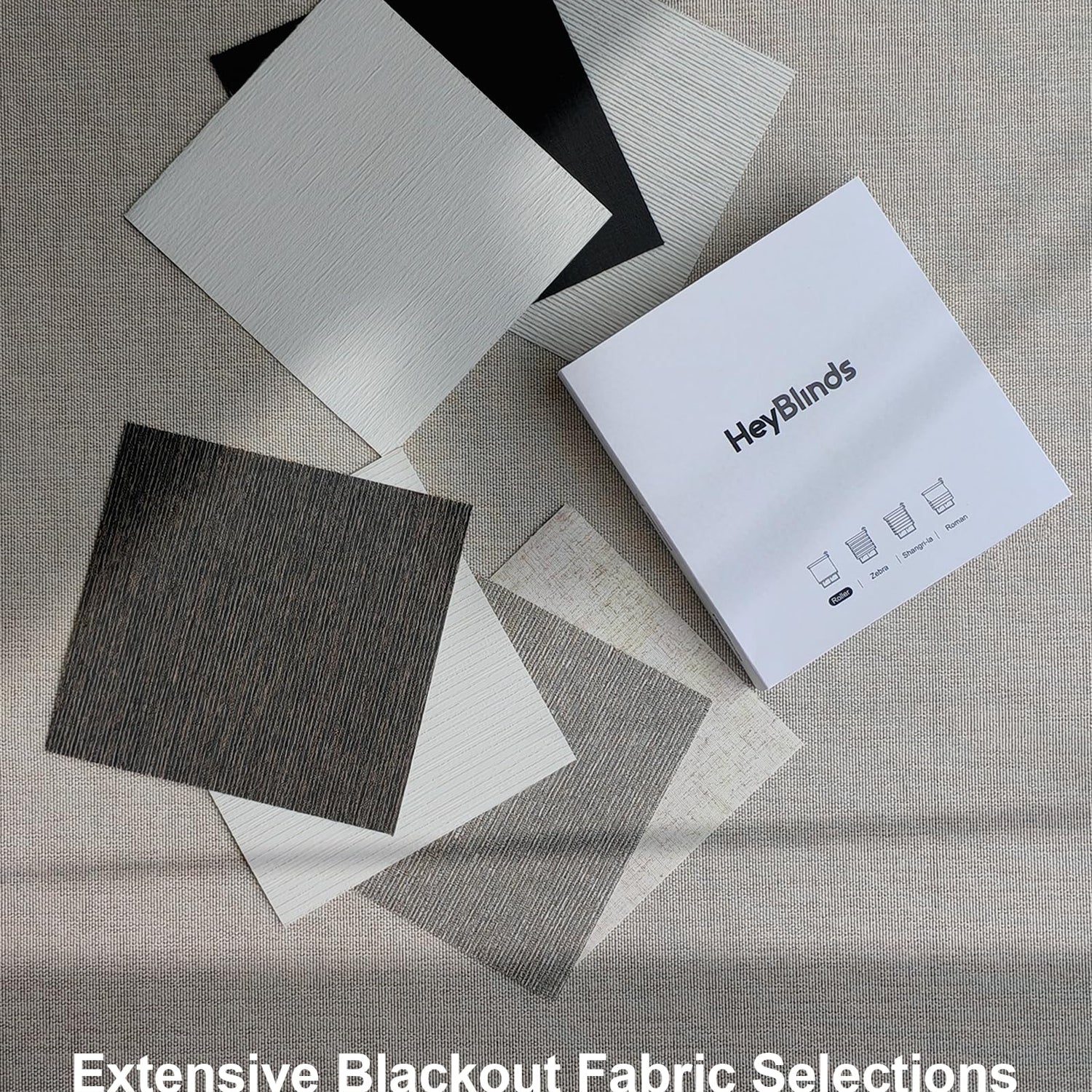 HeyBlinds Motorized Blinds with Remote, 100% Blackout Smart Blinds, Motorized Shades, Automatic Blinds for Windows, Electric Blinds (Blackout Roller Shades Fabric Samples)