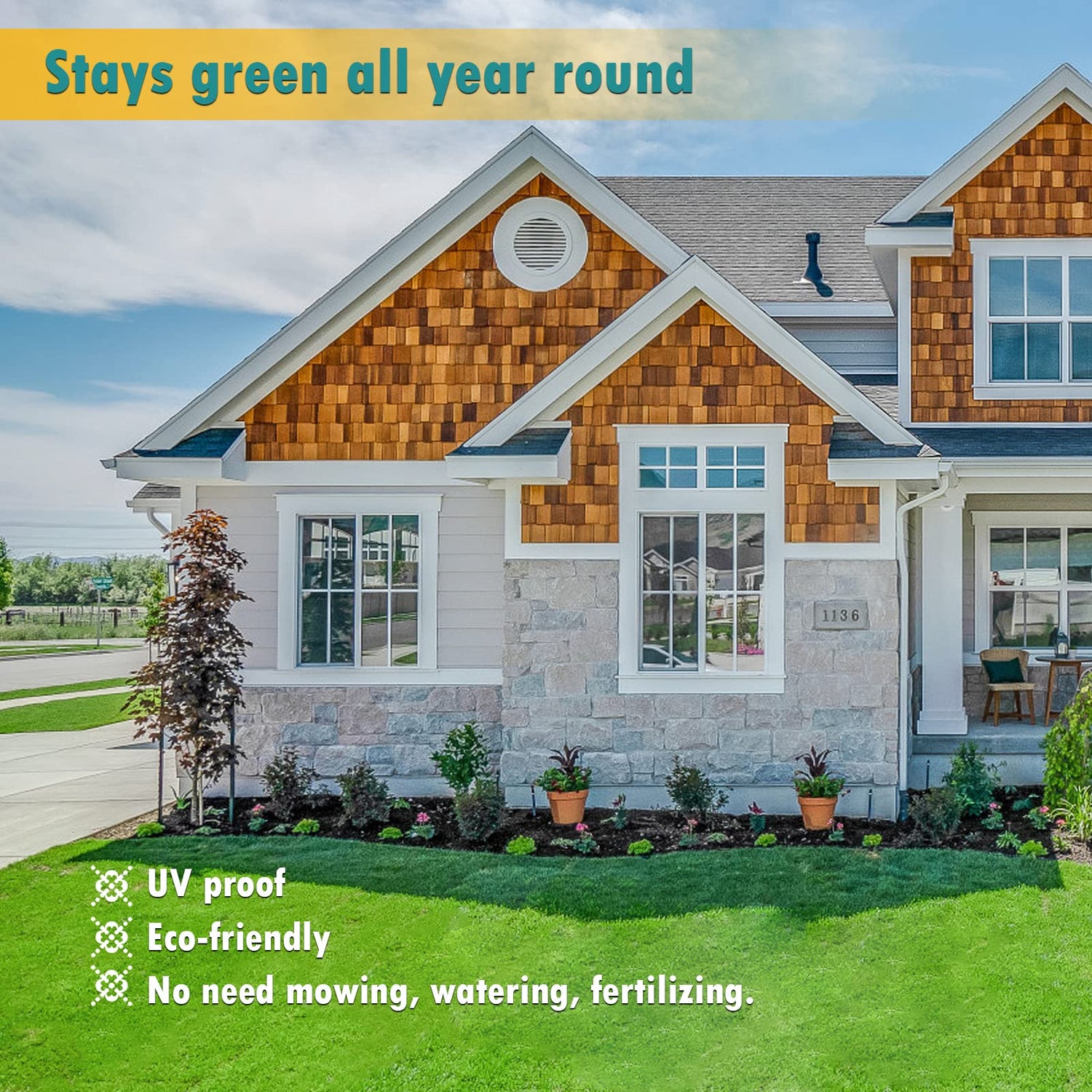 - Easy to Maintain and Clean-- There is no need for watering and mowing! Artificial grass carpet has rubber backboard with drainage holes, helps the grass outdoor rug to dry quickly. Built to last with precise stitching, astro turf is not easy fade.
