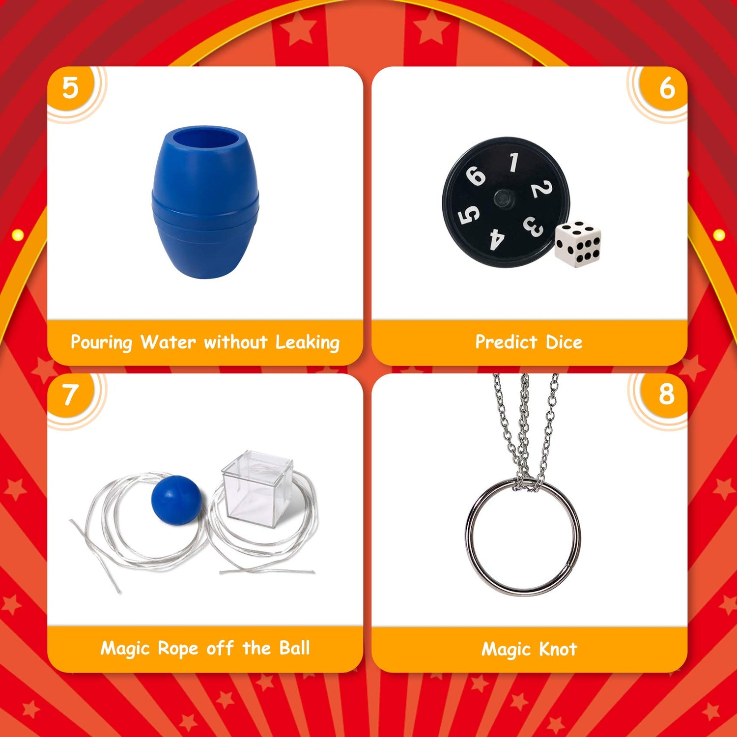 • UNIQUE DESIGNED MAGIC KIT - Heyzeibo magic kit set is designed to give children ages 6+ a successful first journey into the world of magic; The set is filled with so many easy-to-learn tricks and high-quality props, kids can learn the same tricks as professional magicians quickly, to increase self-confidence; At the same time, these basic magic techniques can be extended to other forms of magic that can exercise your child's ability to think
