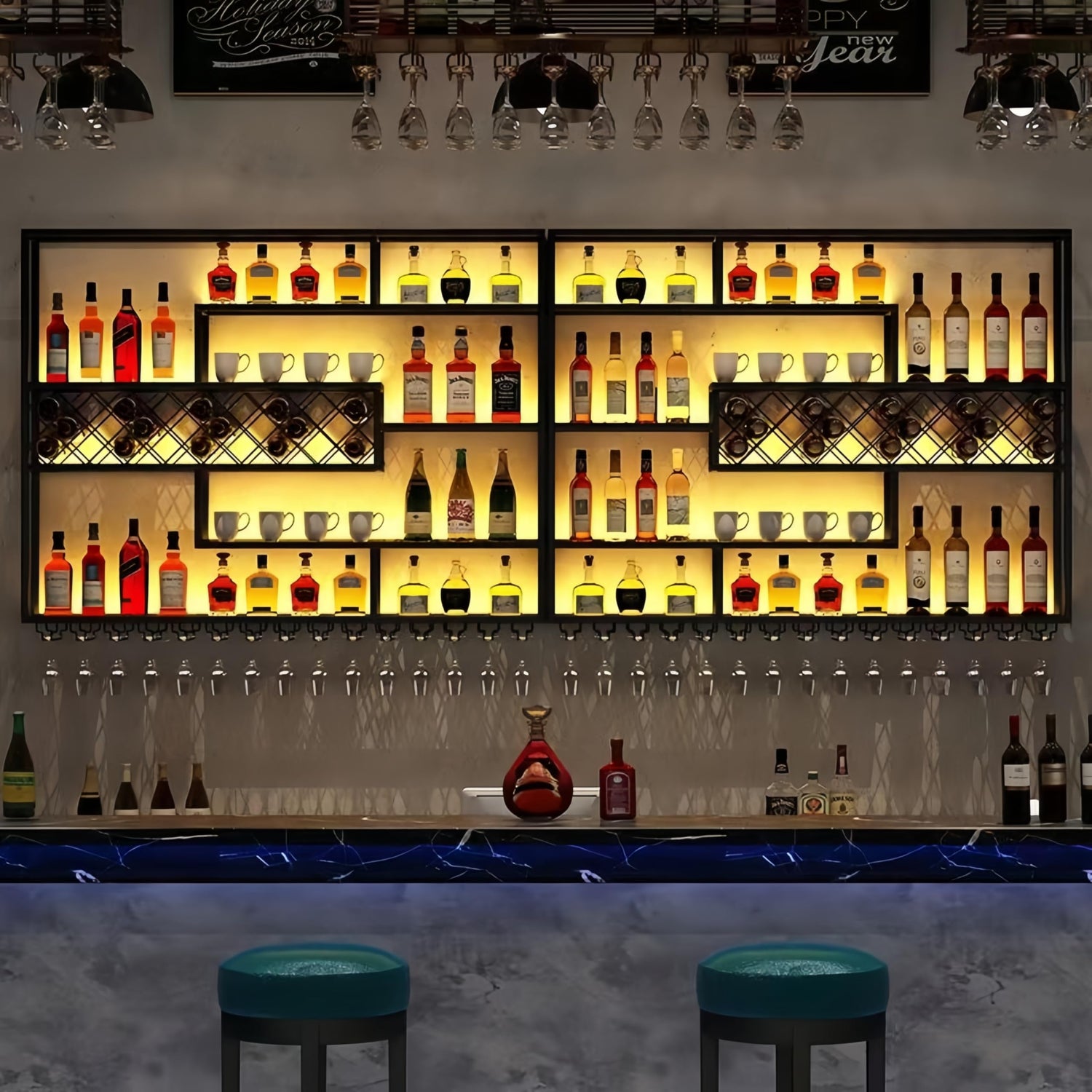 - Modern Liquor Rack Wall Mounted for Stylish Displays - Elevate your decor with this contemporary liquor rack wall mounted, featuring a minimalist iron frame and practical glass hooks. Perfect as a bar shelf wall mounted solution, it balances utility and aesthetics for seamless integration into modern homes or hospitality venues.