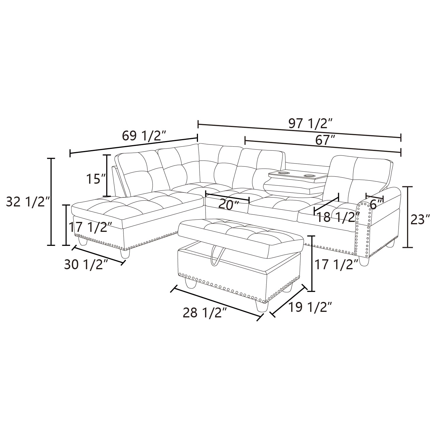 - Innovative Reversible Coffee Table: The center of the sofa is equipped with a reversible coffee table. This ingenious design allows you to customize your space according to your needs. The coffee table includes built-in cup holders designed to hold drinks. Allows you to comfortably enjoy beverages without worrying about where to put your cup.