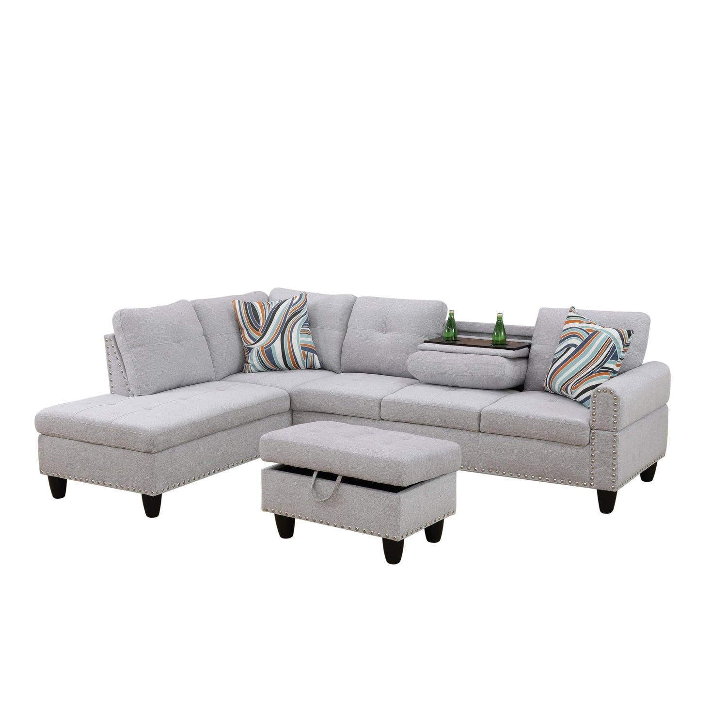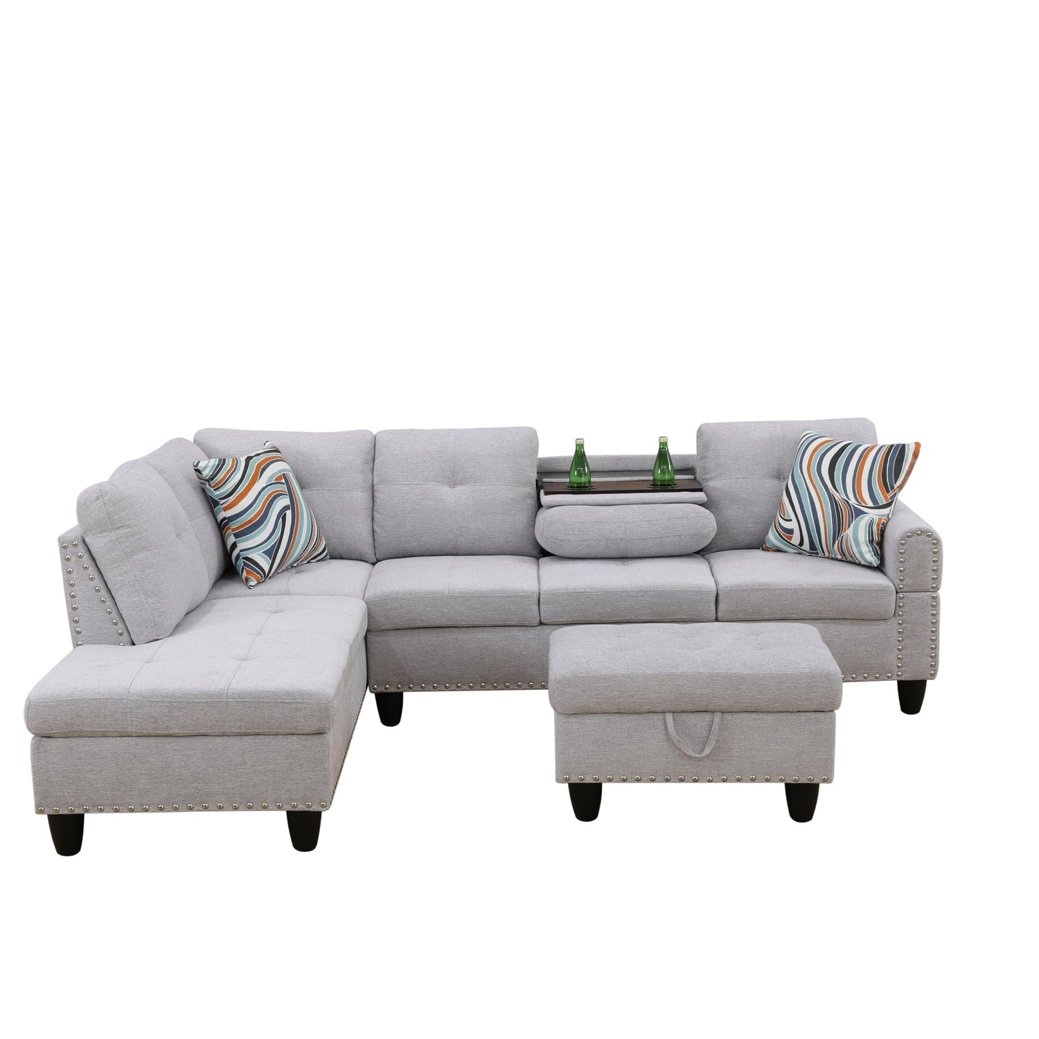 HFYee L Shaped Couch Sectional Couch Morden Sofas for Living Room Upholstered Futon Sofa Bed with Storage Ottoman and Cup Holders for Reception Room and Apartment, Grey White