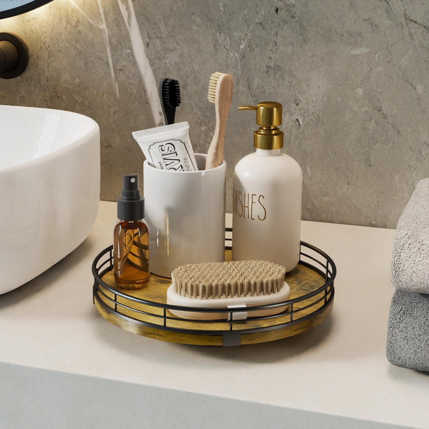 HGF Farmhouse 10" Lazy Susan Turntable Organizer for Table Top, Round Wooden Lazy Susan for Cabinet Kitchen Decor Centerpieces Coffee Table, Storage Condiments Spices, Bathroom Vanity Tray for Soap