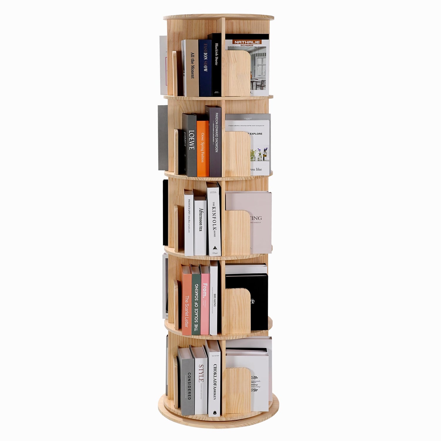 Rotating 360° Bookshelf in Yellow - 5-Tier Solid Wood Corner Organizer for Small Spaces