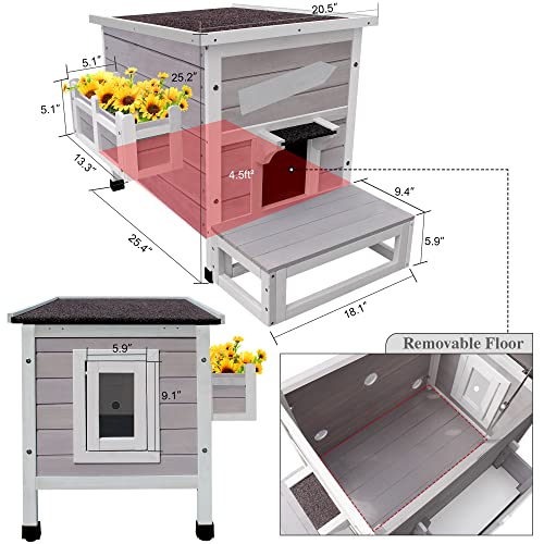 - 【Luxury Cat House】- The overall size of the cat house is 20.5"L x 25.4"W x 25.2"H, sturdy and spacious enough to accommodate 1-3 cats, cats can sleep and play inside comfortably. The weatherproof roof of the feral cat house is openable and together with the removable bottom floor, this makes cleaning simple and easy.